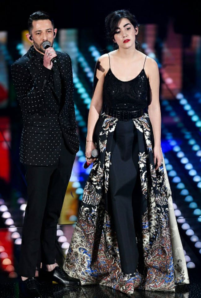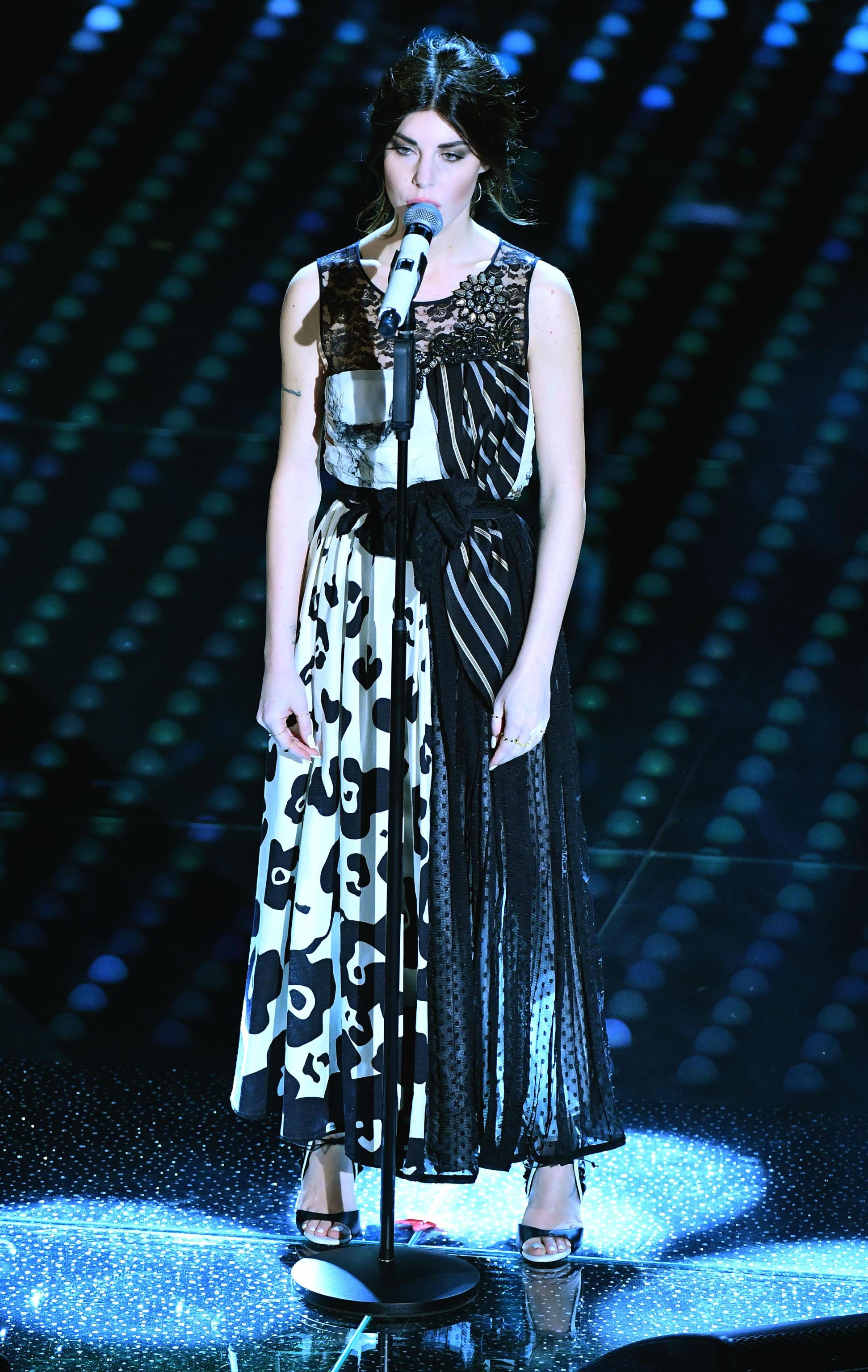 Per quanto riguarda le cantanti, molto bella Bianca Atzei che per l’occasione ha scelto un abito firmato Antonio Marras della collezione primavera/estate 2017 LABORATORIO. Makeup grigio e bronzo, intenso ma nello stesso tempo luminoso, base molto naturale e labbra color pesco hanno completato il look. Che dire, Bianca come sempre si conferma molto glamour. Abito Mario Dice per Alice Paba, vincitrice del talent The Voice, con corpetto nero e ricami in pizzo. Inversione di tendenza per Paola Turci che si dimostra grintosa sul palco sia con una canzone di carattere sia con il look, un completo maschile blu firmato Boglioli con dettaglio sensuale: reggiseno nero vedo non vedo in seta. Abito nero dal sapore retrò con pizzo su carré per Chiara Galiazzo, che ha calcato il palco del Festival con una creazione firmata Melampo. Infine, Giulia Luzi ha scelto un abito voluminoso firmato Antonio Marras, nero, con gonna geometrica e ampia.