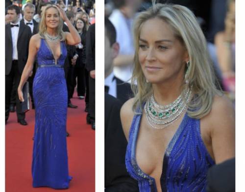 Tra una pioggia di flash e applausi di ammirazione, Sharon Stone ha sfoggiato un abito blu elettrico Roberto Cavalli con scollatura da capogiro sul red carpet per l’anteprima di “Behind the candelabra”, il film di Steven Soderbergh con Michael Duglas e Matt Damon sulla storia dell’entertainer Liberace. L’attrice americana è apparsa in splendida forma e, diciamolo, il suo decolletè non ha nulla da invidiare alla modella, molto più giovane Irina Shayk.