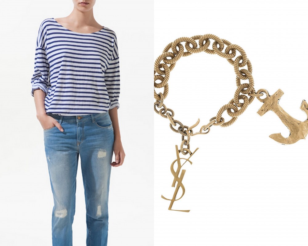 A sinistra: blusa a righe, Zara, € 16,95 A destra: bracciale, YSL, € 276,50
