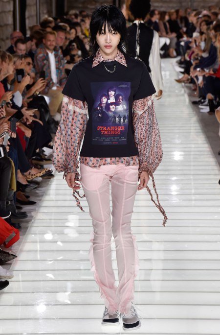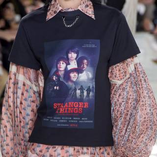 Scostumista– Con Mad Man sono stati gli anni ’50 e ’60 a influenzare il mondo fashionista; linee a corolla o tubini a sacchetto furono ripresi dagli stilisti qualche stagione fa, tanto che la costumista Janie Bryant fu corteggiata da grossi brand come Banana Republic per disegnare una linea ispirata alla fortunata serie televisiva. Il declino della disco e il sorgere della cultura hip hop nella New York di fine anni ’70 è l’ambientazione della serie Netflix “The Get Down” diretta da Baz Luhrmann ed è stata fonte d’ispirazione per Pierpaolo Piccioli per la collezione Cruise 2018 di Valentino. Con Stranger Things, altra seguitissima serie Netflix, sono gli anni ’80 a far impazzire il mondo della moda. Nella immaginaria piccola città dell’Indiana un gruppo di ragazzini indaga sulla misteriosa scomparsa di un loro amico con l’aiuto di una a bambina dotata di particolari poteri psichici fuggita da un laboratorio segreto. Girano in bicicletta come Elliot (il protagonista di E.T. l’extraterrestre e come lui giocano a Dungeons&Dragons), indossano felpe, jeans, cappellini con visiera, giubbini in denim con collo di pelliccia ecologica, occhiali oversize, polo a righe, calzini da tennis e sneakers. E proprio il marchio Reebok che negli anni ’80 andava tantissimo, ha lanciato un’edizione speciale di scarpe dalla linea vintage con la grafica ispirata a Ghostbusters personalizzata sulle scarpe, completa di suole ingiallite e loghi Reebok originali (nella seconda puntata della seconda stagione i ragazzi si travestono da Ghostbusters per Halloween), Dustin Henderson, interpretato da Gaten Matarazzo nella serie, è noto per essere un grande fan del film del 1984, e il modello Reebok Ex-O-Fit Clean Hi ha i disegni di Dustin su ciascun lato delle scarpe. La povera Barb interpretata da Shannon Purser, nonostante le poche apparizioni nella serie, trova giustizia con il sorprendente interessamento dei fans (l’hashtag #justiceforbarb è stato un vero trend nei social media) e con un libro di citazioni, consigli di vita e illustrazioni che il brand britannico Top Shop dedica a lei e alla serie, insieme ad altri accessori come zaini e cappellini. Sembra inoltre che il direttore creativo di Louis Vuitton, Nicolas Ghesquière, sia altrettanto entusiasta della seconda stagione di Stranger Things come lo sono i fan e per l’estate 2018 fa indossare alla modella Sora Choi una t-shirt nera con sopra la stampa del cast su una romantica camicia rosa dalle maniche a sbuffo. Mentre Raf Simmons, direttore creativo di Calvin Klein, per lanciare la nuova linea Calvin Klein By Appointment, sceglie l’attrice tredicenne Millie Bobby Brown (Eleven nella serie) che nel frattempo è diventata una vera e propria trendsetter dei red carpet. La seconda stagione si chiude con l’attesissimo Ballo d’Inverno e sulle note di Time After Time di Cindy Lauper ed Every Breath You Take dei Police si balla indossando ampi abiti di taffeta, camicie con grossi colli, rouches e maniche a sbuffo, gilet di maglia e papillon, e i capelli sono cotonatissimi e stilizzati con l’aiuto della lacca Farrah Fawcett. di Annapaola Brancia d’Apricena
