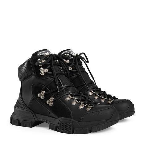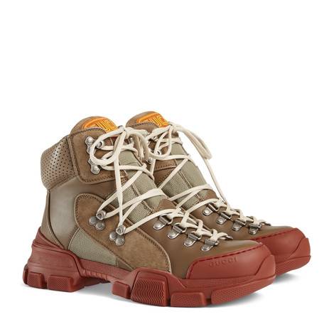Scostumista-Tendenze Autunno: Gli scarponcini da trekking – Camminare ristora il fisico, la mente e l’anima e praticare trekking in alta montagna ci fa conoscere sentieri spettacolari, laghi cristallini, scenari rilassanti. Le passeggiate per le vie delle città certo non ci danno la possibilità di respirare aria pura e incontaminata, ma offrono comunque luoghi interessanti da scoprire, e i benefici sul fisico non sono da meno. Coloro che quest’anno decidono di volersi dedicare a lunghe passeggiate alpine, ma anche chi vuole semplicemente essere glamour e seguire le ultime tendenze, indosseranno inevitabilmente un massiccio scarponcino da trekking anche sotto l’abito più leggero e fluttuante. Ebbene sì, se da ormai svariate stagioni le sneakers sono state le calzature più gettonate e indossate con ogni tipo di outfit, per quest’inverno gli stilisti propongono scarponcini da montagna con tanto di gancetti alla caviglia per attorcigliare i lacci. C’è chi come Alessandro Michele, maestro nel mixare stili all’apparenza inconciliabili, reinterpreta per Gucci il classico scarponcino realizzato con materiali, come gomma, pelle, camoscio e tessuto tecnico, aggiungendo una suola oversize. Moncler, marchio che nasce proprio all’insegna dell’outwear e che solo in recenti stagioni ha acquisito una vena più fashionista, concilia glamour e confort con stivaletti dalla silhouette ispirata agli scarponi da trekking, realizzati in pelle scamosciata, rifiniti con una morbida pelliccia di agnello montata in shearling alle caviglie; c’è anche una versione più autentica con suola e laccio tricolore, segno distintivo del brand. La versione più elegante, e anche la più cara (€1300) la propone il marchio di lusso per eccellenza, Louis Vuitton, che crea una variante dell’anfibio basso Territory, realizzata in pelle di vitello liscia con finiture in morbida pelliccia di volpe. I dettagli e la finitura dorata delle parti metalliche creano un interessante contrasto con lo stile sportivo dell’allacciatura e della suola in gomma scolpita, ispirate ai classici modelli da hiking. Per passeggiate meno impegnative Isabel Marant progetta ankle-boots in tessuto tecnico, ma ci aggiunge una zeppa all’interno poco adatta certo a passeggiate su percorsi accidentati. Poco importa, il trekking in effetti è solo fonte d’ispirazione, Prada infatti al massiccio stivaletto ci aggiunge un tacco 12. Per wonderlust metropolitani il marchio che più s’ispira allo street-style, ovvero Off-White, realizza hiking boots in pelle marrone con placcatura in metallo sul tallone, da indossare con un abito super femminile per un look inaspettato. I più cult: quelli di Acne Studios, in nabuck nero e pelle arancione alla caviglia. In vernice nera lucida montata su una spessa suola in gomma quelli di Kenzo; mentre sono realizzati in pelle scamosciata marrone con finiture in pelle tono su tono e fodera in shearling gli scarponcini firmati See by Chloé. Per i veri amanti di escursioni ad alta quota ci si può affidare sempre a marchi specifici nell’abbigliamento da montagna, come Dolomite, Salomon, Quecha… ma non è certo escluso poterli indossare anche sotto eleganti abiti in leggiadro chiffon. di Annapaola Brancia d’Apricena