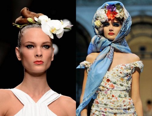 Fiori nei capelli: a sinistra Issa London, a destra Vivienne WestwoodFiori nei capelli: a sinistra Issa London, a destra Vivienne Westwood
