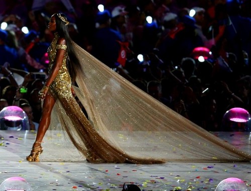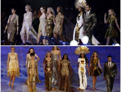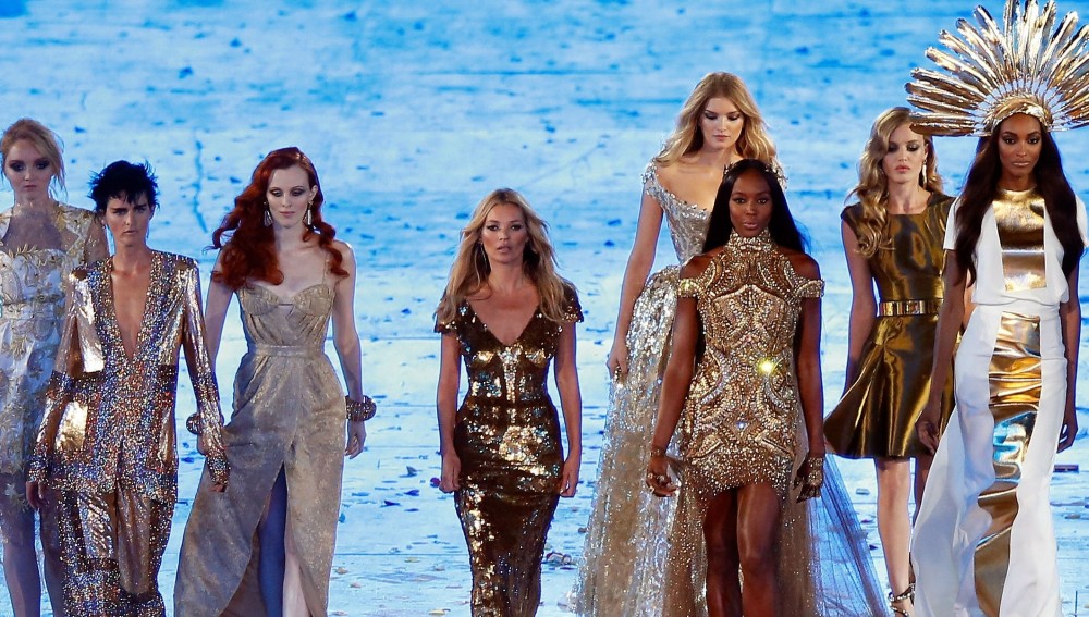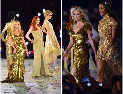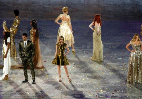 Una selezione delle top model mondiali più belle è salita sul palco: in oro vestite, le modelle hanno celebrato le 29 medaglie d’oro vinte dalla Gran Bretagna con abiti di griffe prettamente inglesi.