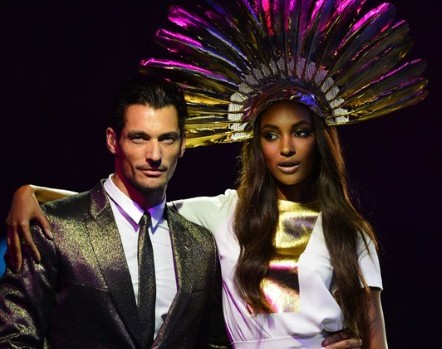 David Gandy in Paul Smith e Jourdan Dunn in copricapo Stephen Jones e abito Jonathan SaundersDavid Gandy in Paul Smith e Jourdan Dunn in copricapo Stephen Jones e abito Jonathan Saunders