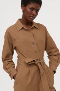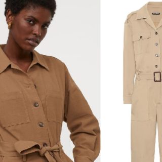 C’è anche un’altra jumpsuit H&M che è ancora più simile al modello D&G, purtroppo però è esaurita. Prezzo: 14.99 euro. Un vero affare. Ma questo non vi vieta di mettervi in lista e auspicare che torni presto disponibile. Questa la sua descrizione: “Tuta lunga in tessuto di misto cotone. Colletto e abbottonatura in alto, spalle ribassate, maniche lunghe con polsino alto e bottone. Taschini sul petto con pattina, tasche laterali e finte tasche a filetto dietro. Cucitura in vita con cintura staccabile da annodare, patta con cerniera. Risvolti cuciti a fondo gamba”.