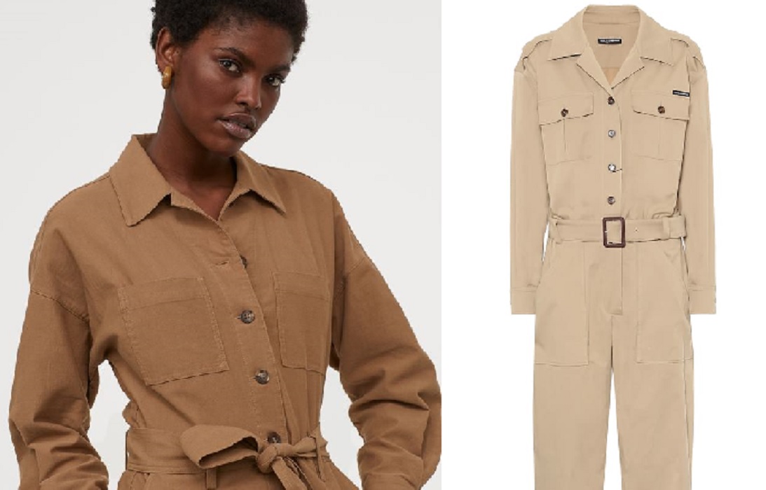 Non disperate se non potete permettervi il capo D&G. Abbiamo trovato alcune alternative sul sito H&M che vi permetteranno di sfoggiare un look simile spendendo poco. Il primo capo è una tuta da 39.90 euro davvero simile a quella del suo di stilisti. Sul sito è così presentata: “Tuta alla caviglia in tessuto di cotone strutturato. Colletto, bottoni in alto e taschini aperti. Spalle bassissime, maniche lunghe con polsino e bottone. Cucitura in vita con pinces davanti. Cuciture modellanti dietro e cintura removibile da annodare in vita. Linea morbida. Patta con cerniera. Gamba a sigaretta e tasche applicate con pattina. Sfoderata”.