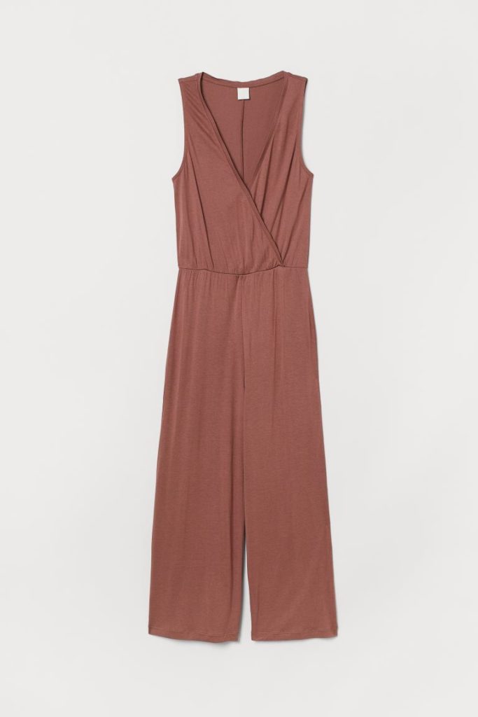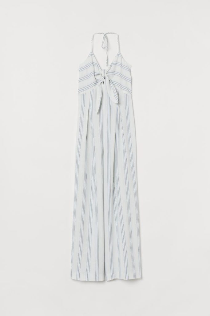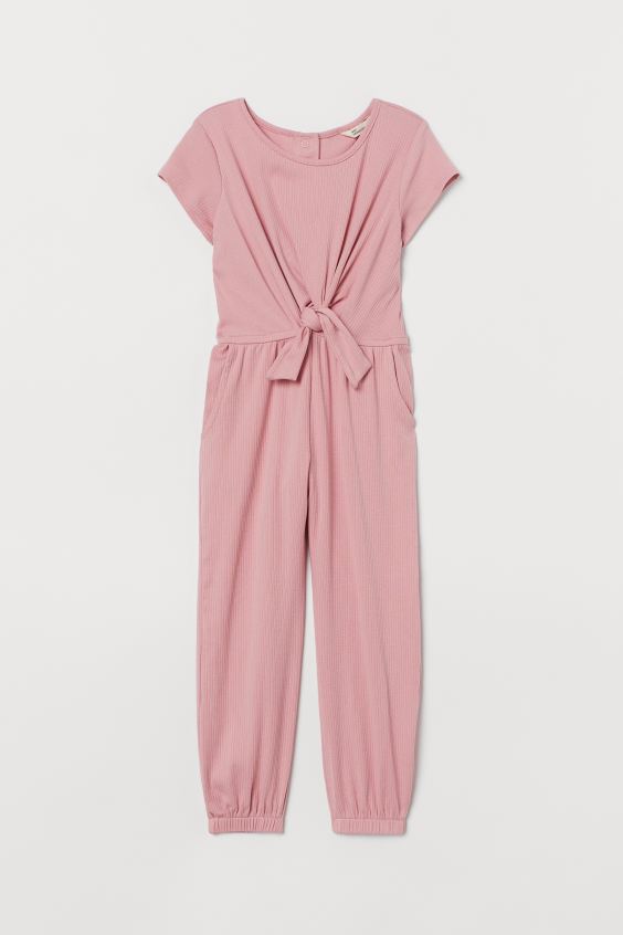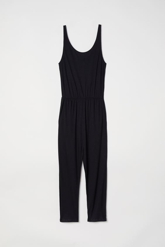Oggi vi proponiamo una serie di tute intere H&M per un look casalingo semplice ma stiloso. Partiamo da un modello in jersey di cotone biologico. Maniche corte, scollo arrotondato e bottoni automatici sulla nuca. Cucitura con elastico sottile e nodo decorativo in vita. Tasche laterali. Elastico a fondo gamba. Disponibile in due colori.