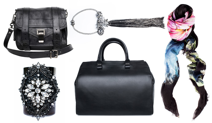 Nero - Borsa Proenza Schouler, bracciale Erickson Beamon, borsa Victoria Beckham, collana Erickson Beamon, sciarpa Stella McCartney