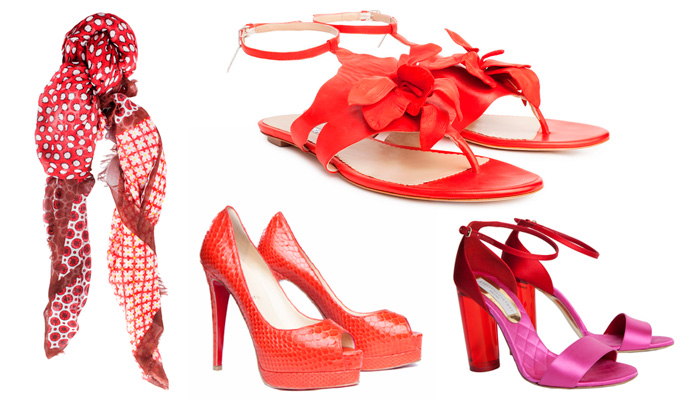 Rosso/arancio - Sciarpa Stella McCartney, scarpe Christian Louboutin, infradito Christian Louboutin, sandali Stella McCartney