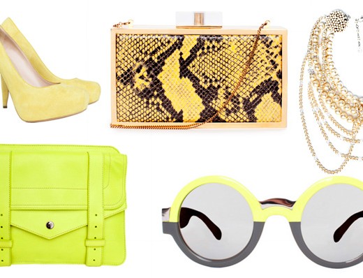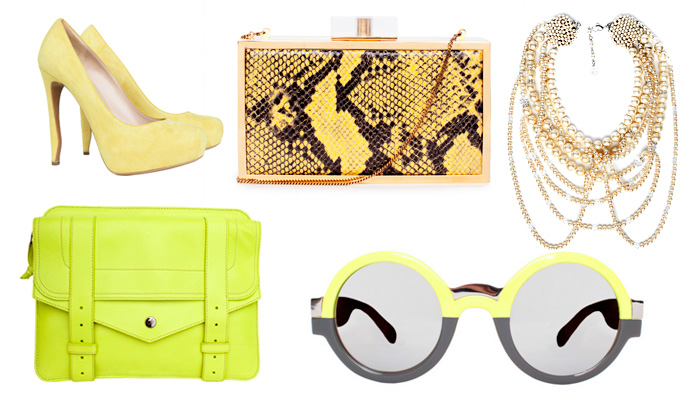 Giallo - Scarpe Nicholas Kirkwood, borsa Proenza Schouler, pochette Stella McCartney, occhiali da sole Diane von Furstenberg, collana Erickson Beamon