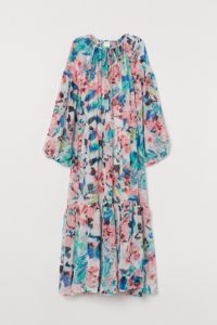 Abito lungo e ampio in leggero chiffon, scollo a V con laccetti da annodare, spalle basse e maniche lunghe a palloncino con elastico in fondo. Questo vestito di HM ha davvero tutti i requisiti per essere catapultato direttamente dentro il nostro armadio, in attesa di poterlo sfoggiare agli aperitivi sulla spiaggia con una flat gioiello.