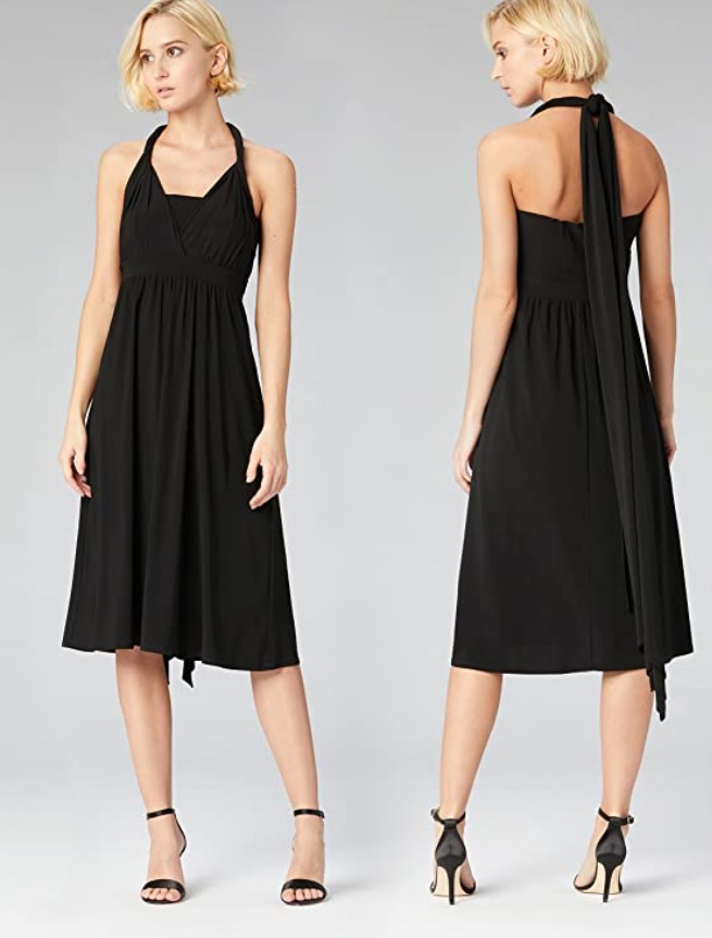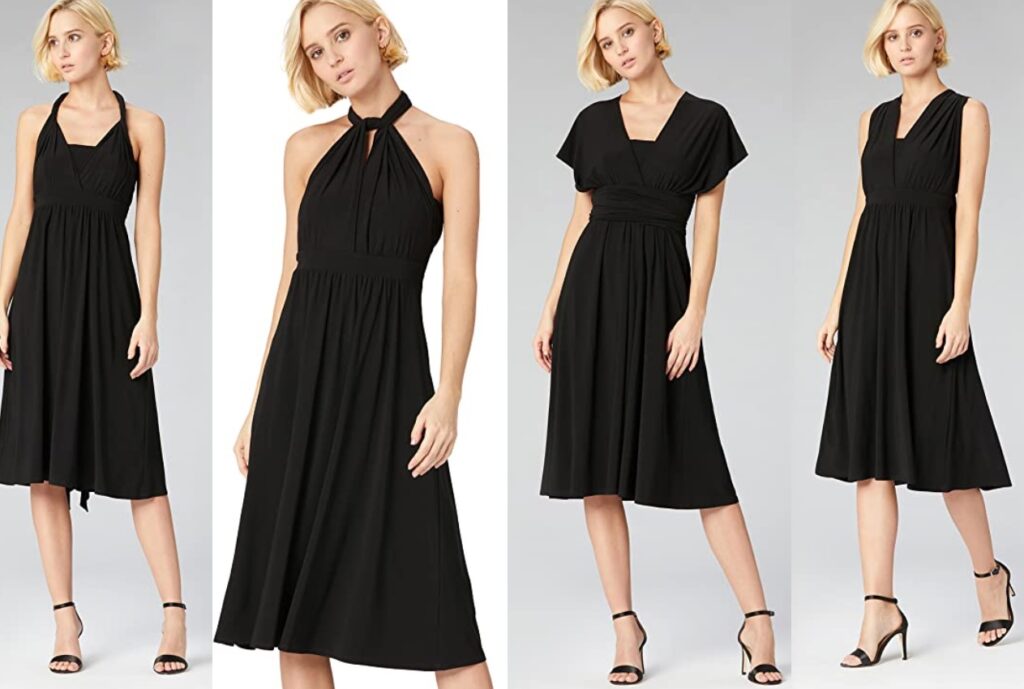 “Abito bello e ben rifinito” ha detto un recensore. “Molto oltre le aspettative! Il peso non è leggerissimo, ma è un pregio, perché fa cadere bene la gonna, che è morbida e non fasciante, ottimo aspetto per chi ha fianchi forti. Le rifiniture e le cuciture sono curate. Sono entusiasta delle molte combinazioni rese possibili dalle due fasce sul corpetto, non vedo l’ora di sfoggiarle tutte. Peraltro, le fasce sono più leggere del resto dell’abito e non appesantiscono nei vari ‘giri’ che si possono far fare loro intorno al collo o al busto. Il corpetto è leggermente imbottito e dotato di banda di silicone per impedire che scenda: in questo modo, giocando con le due fasce sotto al seno, può diventare addirittura un abito senza spalline! Ho preso il nero, ma comprerò sicuramente altri colori. Ottimo rapporto qualità-prezzo. Uno degli acquisti più felici fatti su Amazon!”.