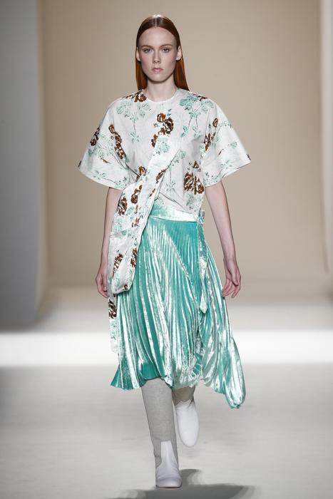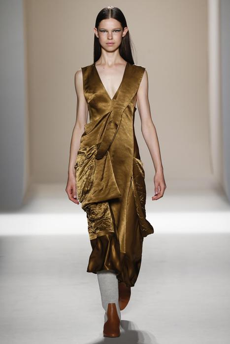 NEW YORK – Victoria Beckham sfila a Wall Street. Due minuti di silenzio, alle 9:59 e alle 10:29, hanno preceduto la sfilata dell’ex Spice Girl, un omaggio alle vittime dell’11/9. Poi lo show: una naturale evoluzione della scorsa stagione in cui Victoria aveva resuscitato il reggiseno a corsetto in maglia e senza le stecche. Tradizionali i tessuti – pelle, pizzo, satin, seta lavata o velluto delabré – trattati per renderli più moderni e rilevanti. Maniche larghe a kimono, abiti di maglia a coste sottili che diventano righe, gonne di pelle a pieghe con motivi floreali e due scarpe della stagione: uno stivale di cavallo di tela profilato di pelle, una pantofola dal taglio orientale entrambe rasoterra. Une collezione semplice e allo stesso tempo elegante, così come è la stessa stilista.