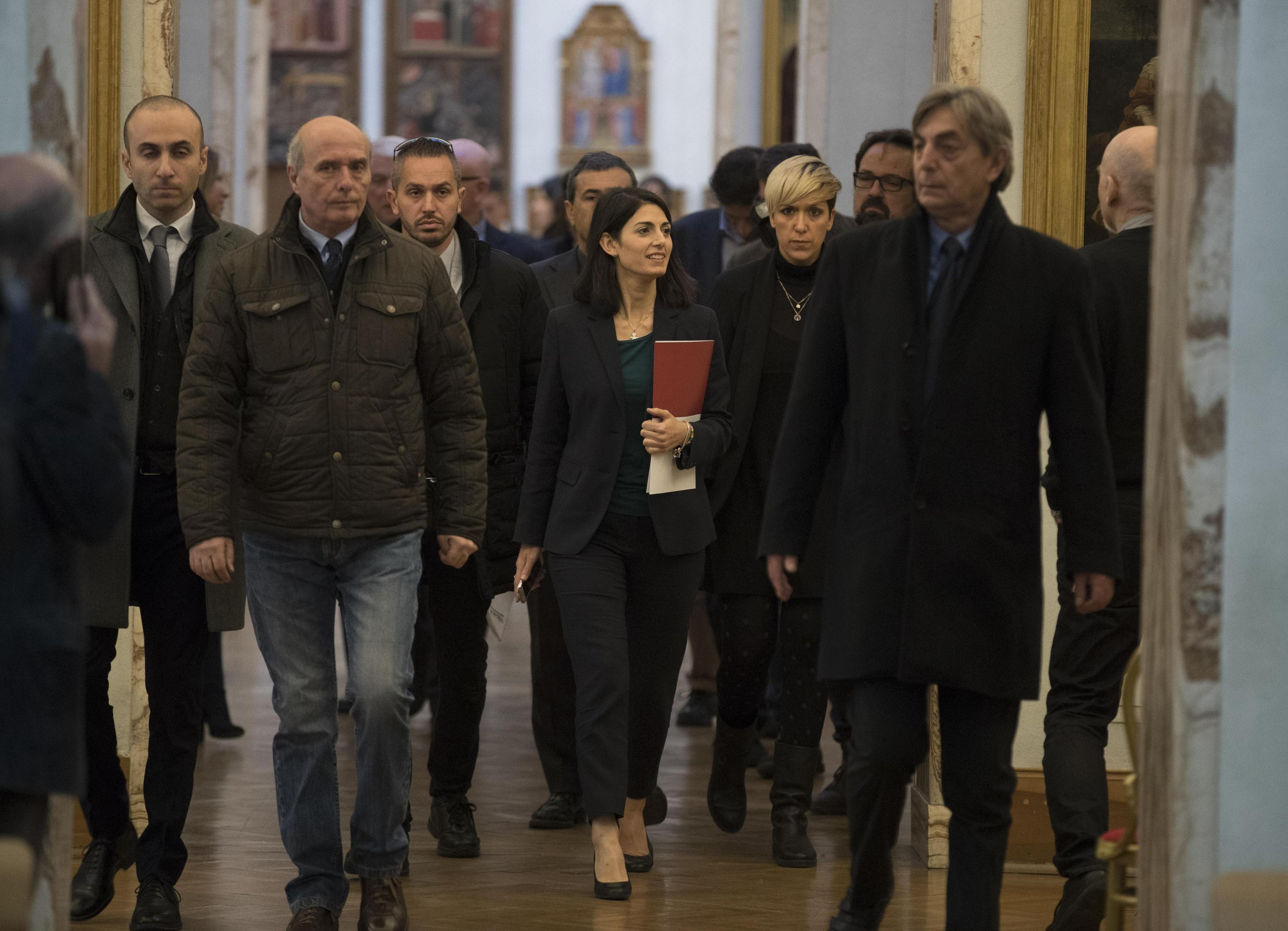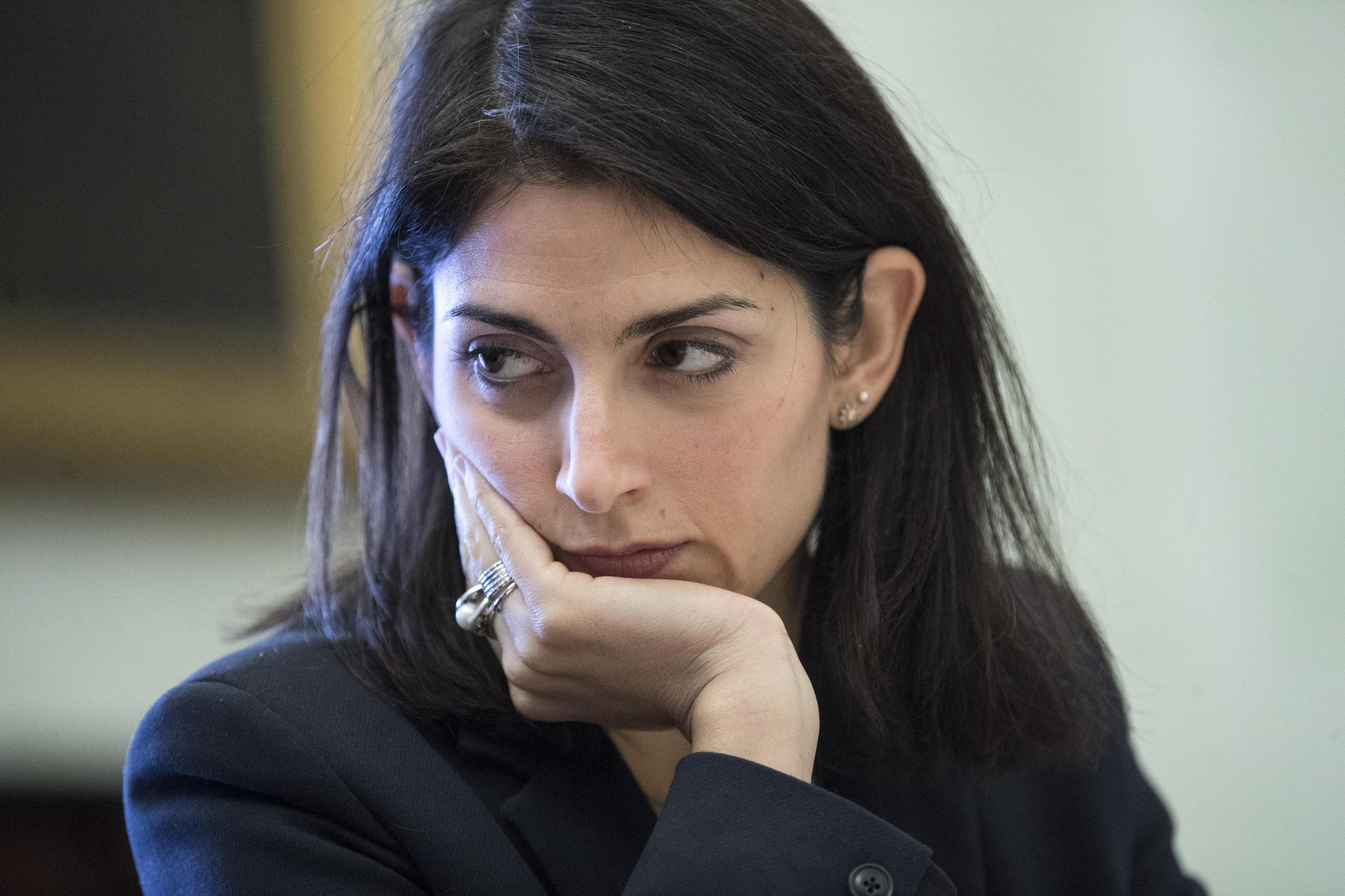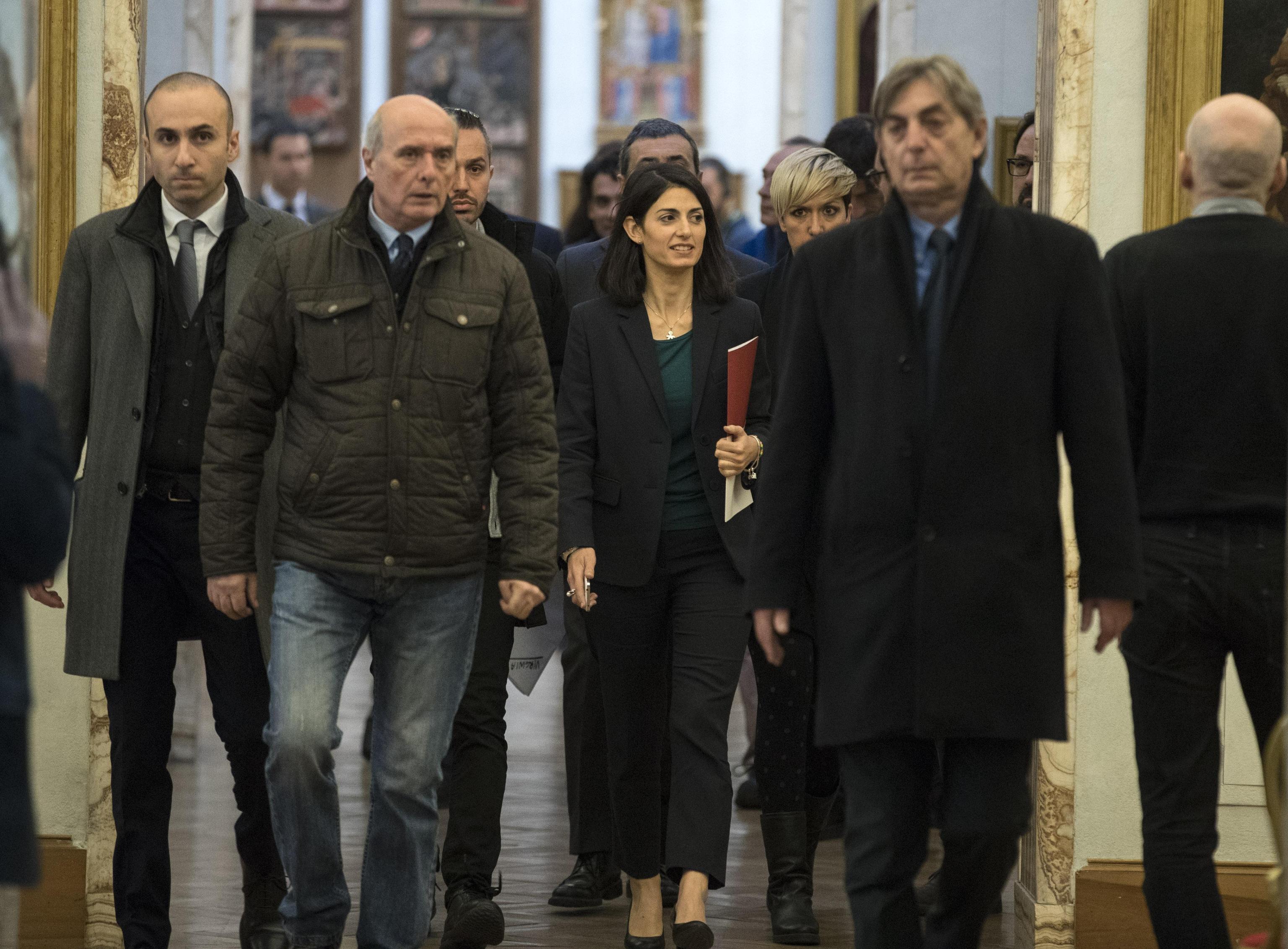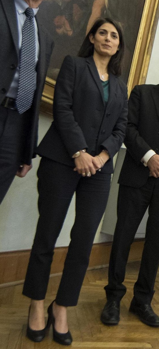Virginia Raggi, tailleur nero e blusa verde al Campidoglio FOTO