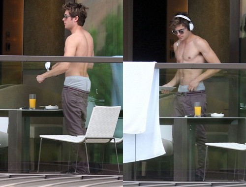 Eccolo, dunque, paparazzato sul terrazzo. Il suo look? Petto nudo e boxer griffati Calvin Klein.