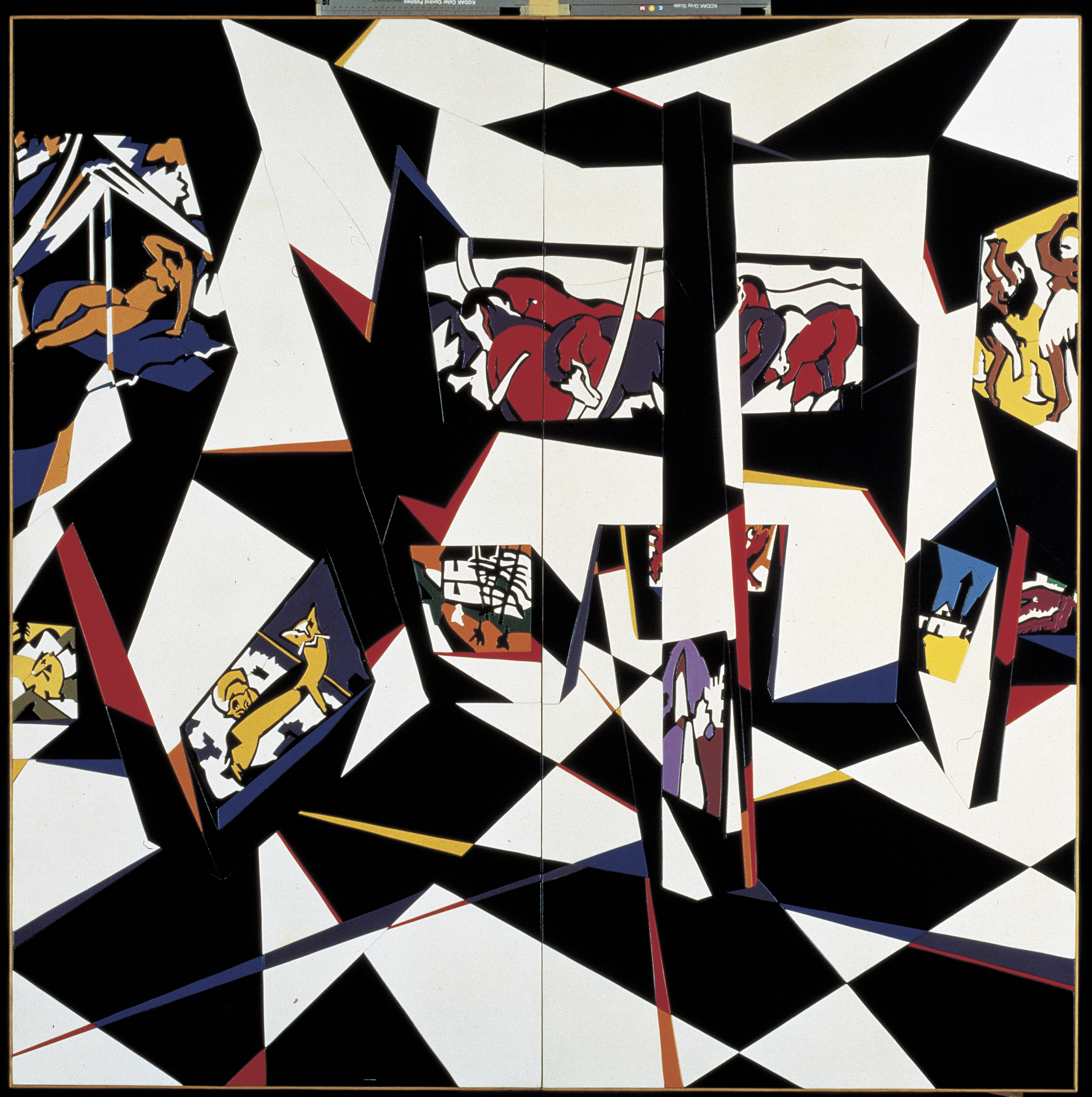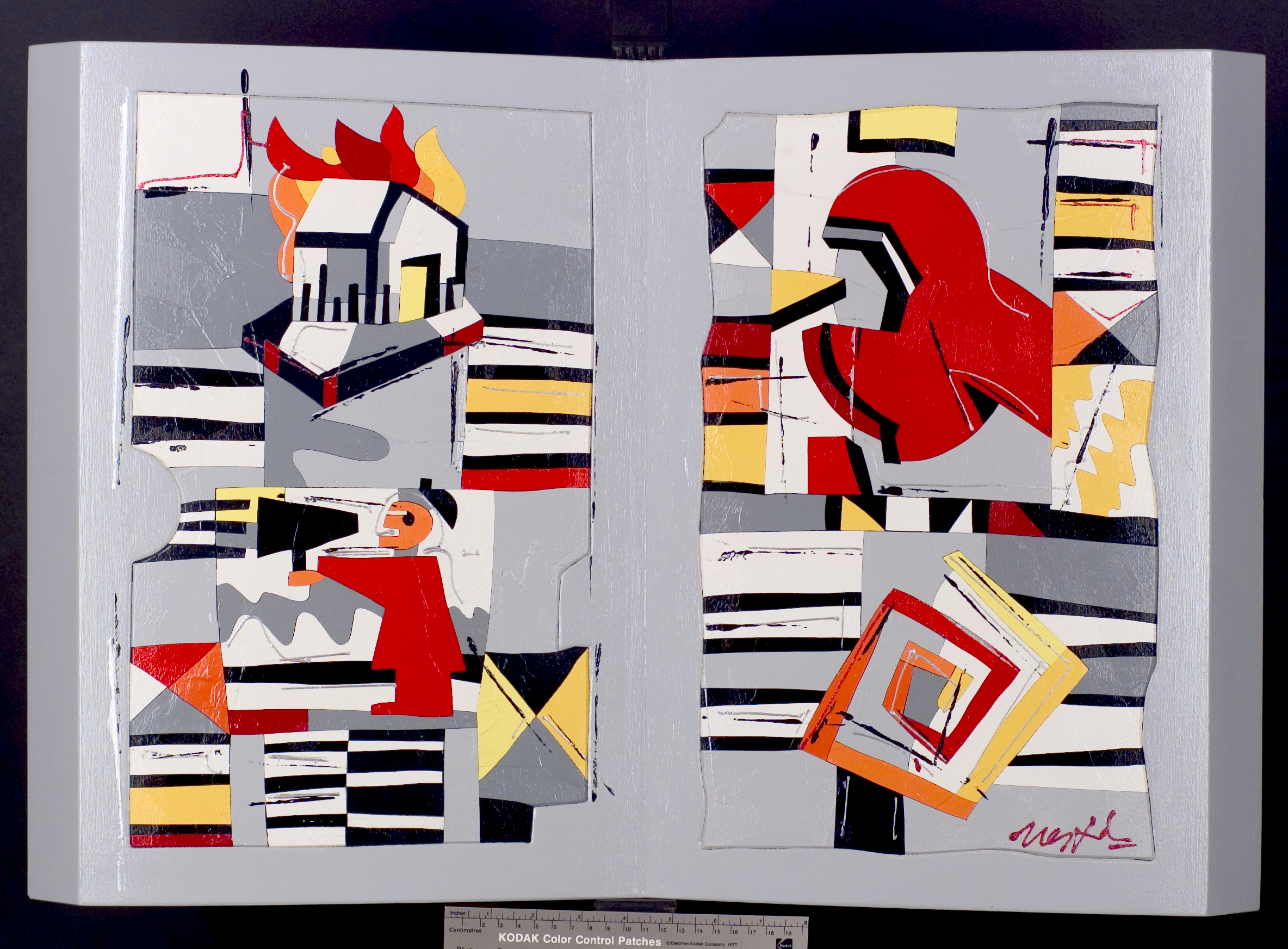 A modo mio. Nespolo tra arte, cinema e teatro è la personale dedicata all’esperienza multidisciplinare dell’artista piemontese che inaugural oggi al Centro Saint-Bénin di Aosta per rimanere aperta fino a domenica 8 aprile. L’esposizione, curata dal critico d’arte Alberto Fiz in collaborazione con il filosofo Maurizio Ferraris, è organizzata dall’Assessorato Istruzione e Cultura della Regione autonoma Valle d’Aosta. Sono oltre 80 le opere esposte tra dipinti, disegni, maquettes per il teatro, sculture, tappeti, fotografie e manifesti realizzati dal 1967 fino ad oggi in un percorso spettacolare e coinvolgente, ideato per gli spazi dell’ex chiesa sconsacrata. Dall’arte al cinema, dai cartoon televisivi alla logica matematica fino al teatro, le opere, disposte in base a tracciati tematici, creano una costellazione all’interno del Centro Saint- Bénin da cui emerge la versatilità di uno dei più originali e trasgressivi interpreti della scena contemporanea italiana che ha ripercorso stili e stilemi “a modo suo”, senza mai lasciarsi imbrigliare dalle convenzioni. Nespolo fa il suo ritorno ad Aosta 23 anni dopo la sua prima personale organizzata nel 1994 alla Tour Fromage: Effetto pittura era il titolo di quella mostra dove il curatore e grande storico del cinema Gianni Rondolino, recentemente scomparso, sottolineava come l’universo cinematografico inteso come la moltiplicazione delle immagini sul terreno della fantasia e dell’immaginazione fosse per l’artista il campo d’azione privilegiato. Anche in questa circostanza il cinema ha un ruolo significativo sia nella sua dimensione specifica, sia nella sua reinterpretazione pittorica dove i frame dei suoi film diventano grandi dipinti che conservano la memoria della pellicola. Nell’ambito della mostra, poi, uno spazio specifico è dedicato alle differenti forme d’indagine audiovisiva partendo dal cinema sperimentale e dai cortometraggi degli anni sessanta dove compaiono tra i protagonisti Lucio Fontana, Alighiero Boetti, Michelangelo Pistoletto, Mario Merz, Enrico Baj, per giungere fino a Yo Yo, la serie di cartoni animati in 52 episodi realizzata nel 2016 per Rai Yo Yo che ha vinto il primo premio nella sezione Series Preschool a Cartoons on the Bay in occasione della 21° edizione del Festival Internazionale dell’Animazione 2017.