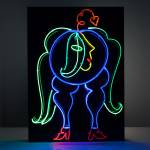 Con questa mostra Ria Lussi parte da una riflessione sul tema della fragilità come caratteristica intrinsecamente umana. L’artista esprime così attraverso l’utilizzo metaforico di materiali tutti fragili, resistenti e luminosi, un’intera cosmogonia di esseri, suscettibili, metamorfici che sembrano rappresentare l’intera gamma delle emozioni umane. I materiali utilizzati dall’artista per le opere in mostra (circa venti) – vetro, neon, e seta – richiedono cura e controllo, suggeriscono di essere trattati con delicatezza, inducendo al gesto affettivo. Inoltre per le opere in neon e in vetro di Murano, Ria Lussi si è avvalsa del contributo dell’eccellenza delle maestranze italiane con cui vengono realizzati pezzi unici, di raro valore. I soggetti di Ria Lussi sono archetipi tra storia e mito: busti di vetro, perimetri con neon, lampadine lungo telai elettrificati, pigmenti su seta leggera: materiali fragili che chiedono cura e controllo e che inducono al rispetto per habitat e nature.