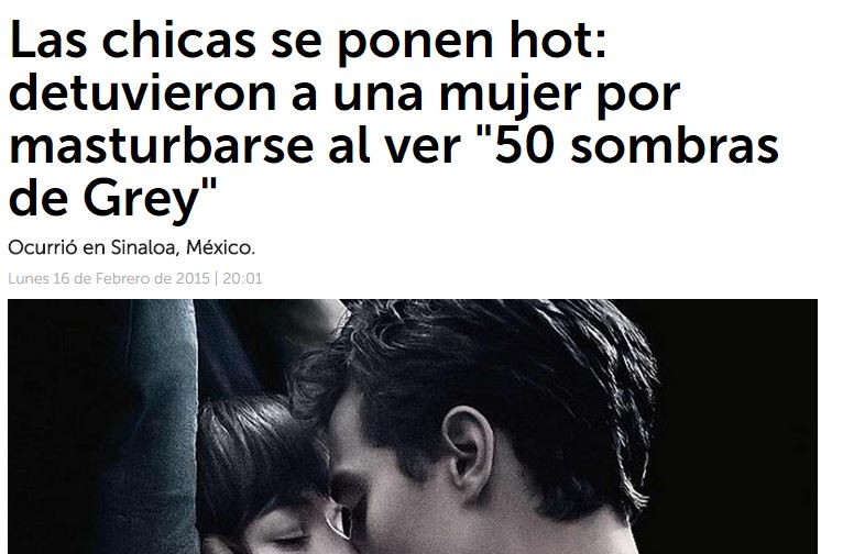 SINALOA (MESSICO) – 50 sfumature di grigio, si masturba durante film. Arrestata 33enne messicana. E’ successo a Sinaloa (Messico). Secondo quanto riportato da TnTodoNoticias, la donna era seduta al cinema nella fila 12, dunque piuttosto vicina allo schermo. Si è tirata giù il pantalone e ha iniziato a procedere con la pratica di autoerotismo. Gli altri spettatori se ne sono accorti e non gradendo il suo gesto l’hanno denunciata. La polizia l’ha arrestata per “mancanza di moralità”. Incredibile, ma vero, considerando che il Messico è un Paese molto religioso.