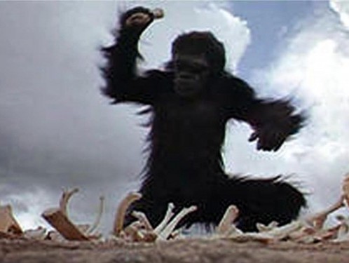 Le scimmie umanoidi di 2001 Odissea nello spazio di Stanley Kubrick create dal truccatore Stuart Freeborn. ANSA