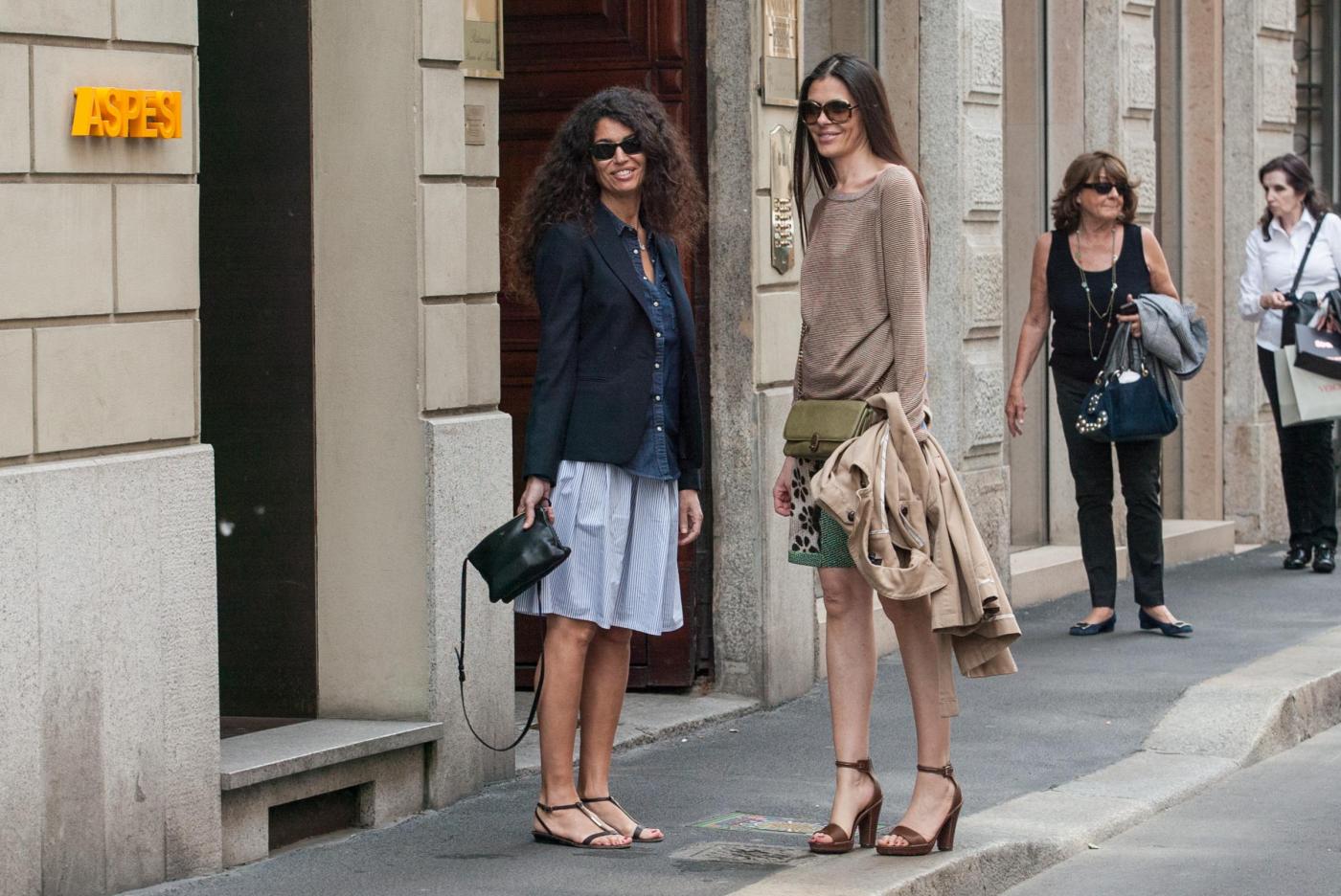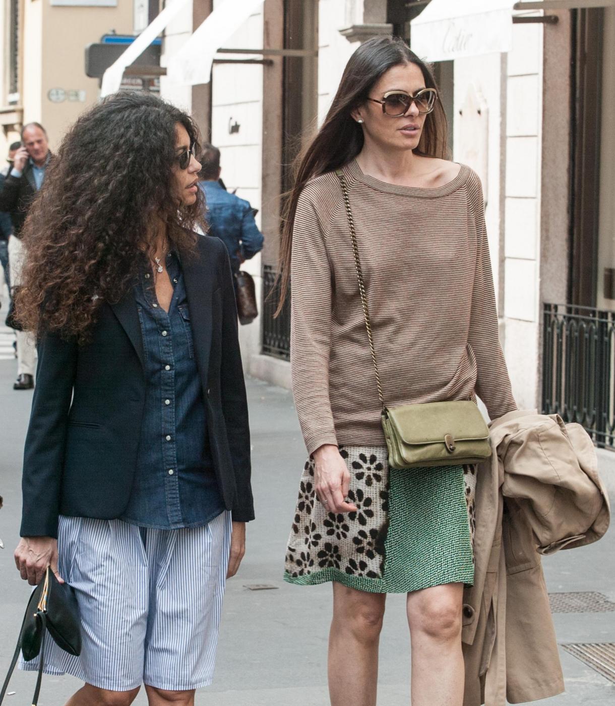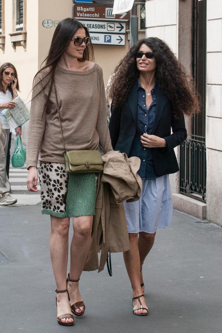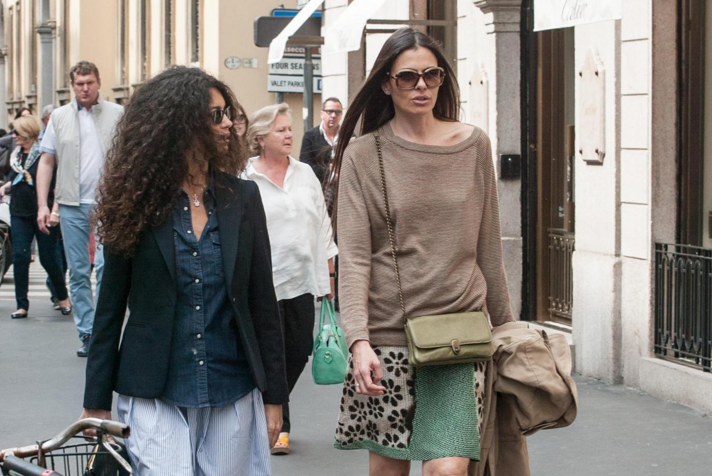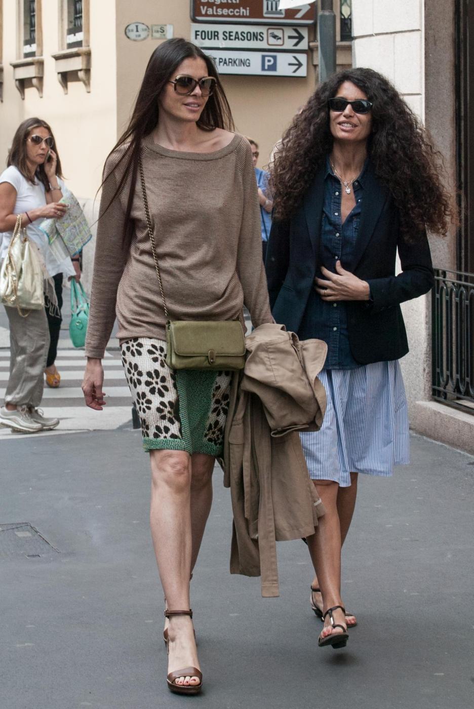 MILANO – Le riccia e la liscia, entrambe more e bellissime. Per la showgirl tunisina naturalizzata italiana Afef Jnifen e la sua amica, che la accompagna in via Montenapoleone a Milano, è già estate. Le due hanno scelto dei semplici sandali e gonnelline leggere per il giro di shopping, lasciando scoperte le gambe.