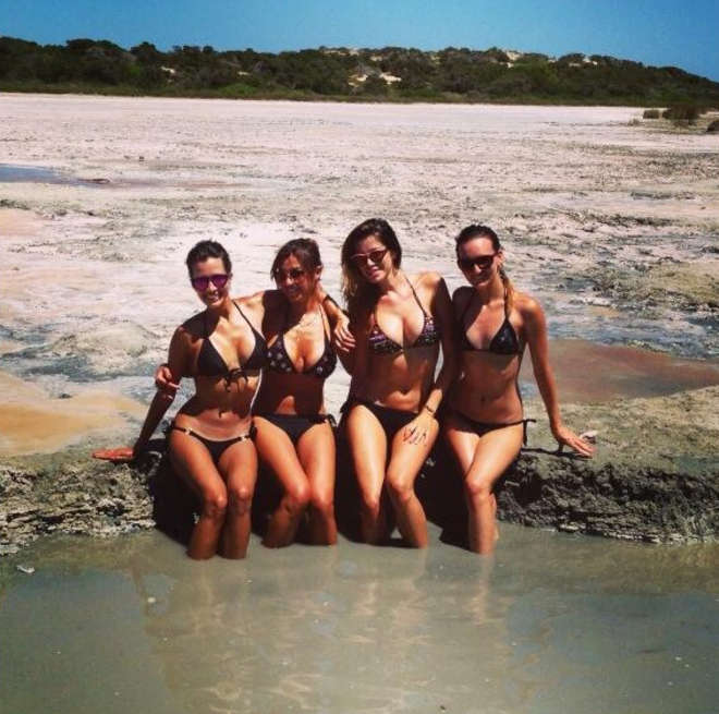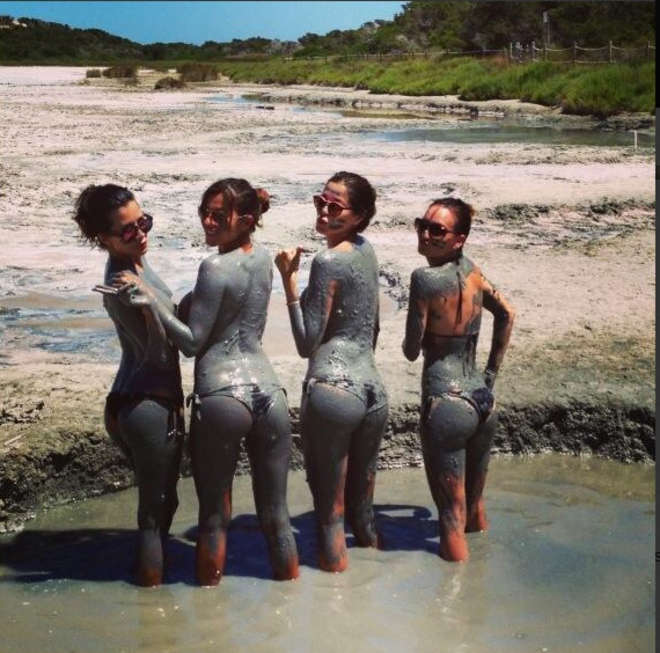 Sull’isola delle Baleari, la bella showgirl venezuelana ha postato una foto in cui il suo lato B è ricoperto dal fango. Insieme a lei, tre amiche bellissime: una di loro è l’ex conduttrice di Guida al Campionato Susanna Petrone.