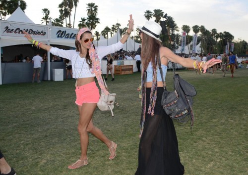 INDIO (CALIFORNIA, STATI UNITI) – Alessandra Ambrosio sa come divertirsi con stile: la modella di 32 anni in versione hippy ha presenziato al Coachella festival in California. Bandana floreale nei capelli alternata, mini tank bianca e lilla, short rosa e una miriade di bracciali fluo sulle braccia, la bellezza brasiliana si è goduta insieme agli amici il weekend di musica e relax al festival di Indio in California.