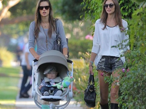 BRENTONWOOD (CALIFORNIA, STATI UNITI) – Approfittando del giorno dal clima primaverile, Alessandra Ambrosio è andata a spasso a Brentonwood con alucni amici e i figli Anja e Noè.