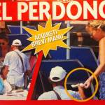 Nella sequenza di foto scattate dai paparazzi di Novella2000 si vede Alessandra Mussolini parlare con un commerciante sulla spiaggia