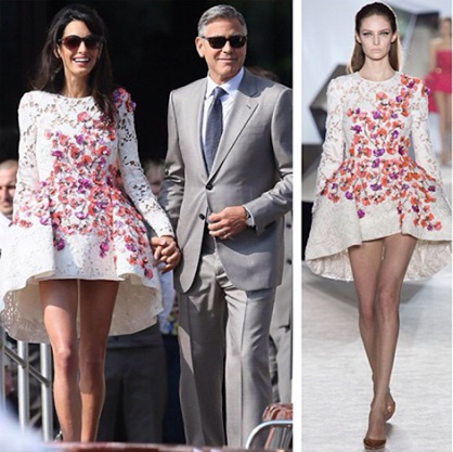 E la forma e la linea dell’abito non lasciano spazio a dubbi: è firmato Giambattista Valli, stilista dai tratti inconfondibilmente chic scelto da moltissime celebrity, tra cui anche la neo moglie di George Clooney, l’avvocato Amal Alamuddin.