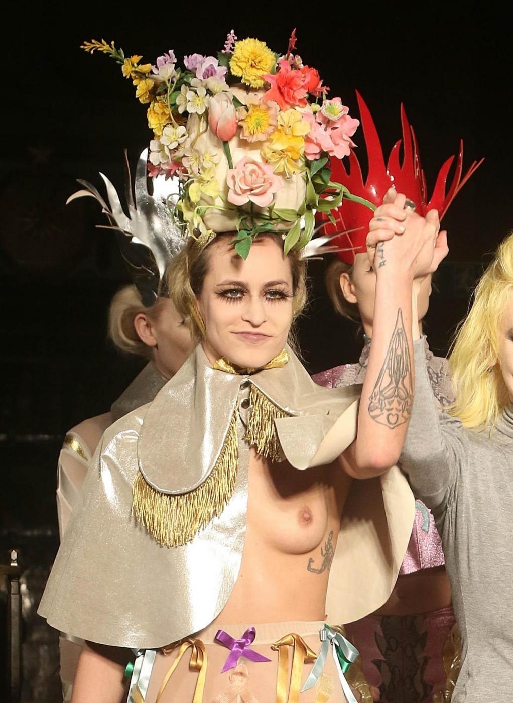 Picture Shows: Alice DellalFebruary 22, 2015Alice Dellal walks the runway at the Pam Hogg fashion show at London Fashion Week in London, UK. The British model accidentally exposed her breast as Pam Hogg raised her hand at the end of the show.FameFlynet UK/LaPresseOnly Italy