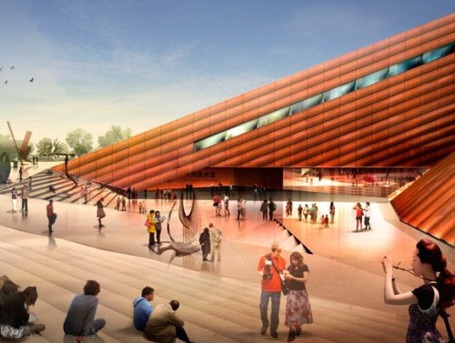 LONDRA – Lo studio di architettura Norman Foster Foster + Partners a fine aprile ha pubblicato sul suo sito le foto ufficiali del nuovo progetto del Datong Art Museum in Cina. Gli architetti britannici hanno creato un master plan per il Museo di Arte nella città di Datong, che ricorda le piramidi egiziane o anche una catena montuosa. La superficie esterna, praticamente il tetto dell’edificio, è in uno speciale acciaio che ossidandosi assume un color bronzo, un materiale ampiamente utilizzato come elemento decorativo e per creare sculture come quelle che crea, per esempio, lo scultore Richard Serra (famoso per la enorme scultura Snake, tre sinuosi fogli d’acciaio che creano un percorso curvilineo, opera permanentemente installata nella galleria più grande del Museo Guggenheim di Bilbao).
