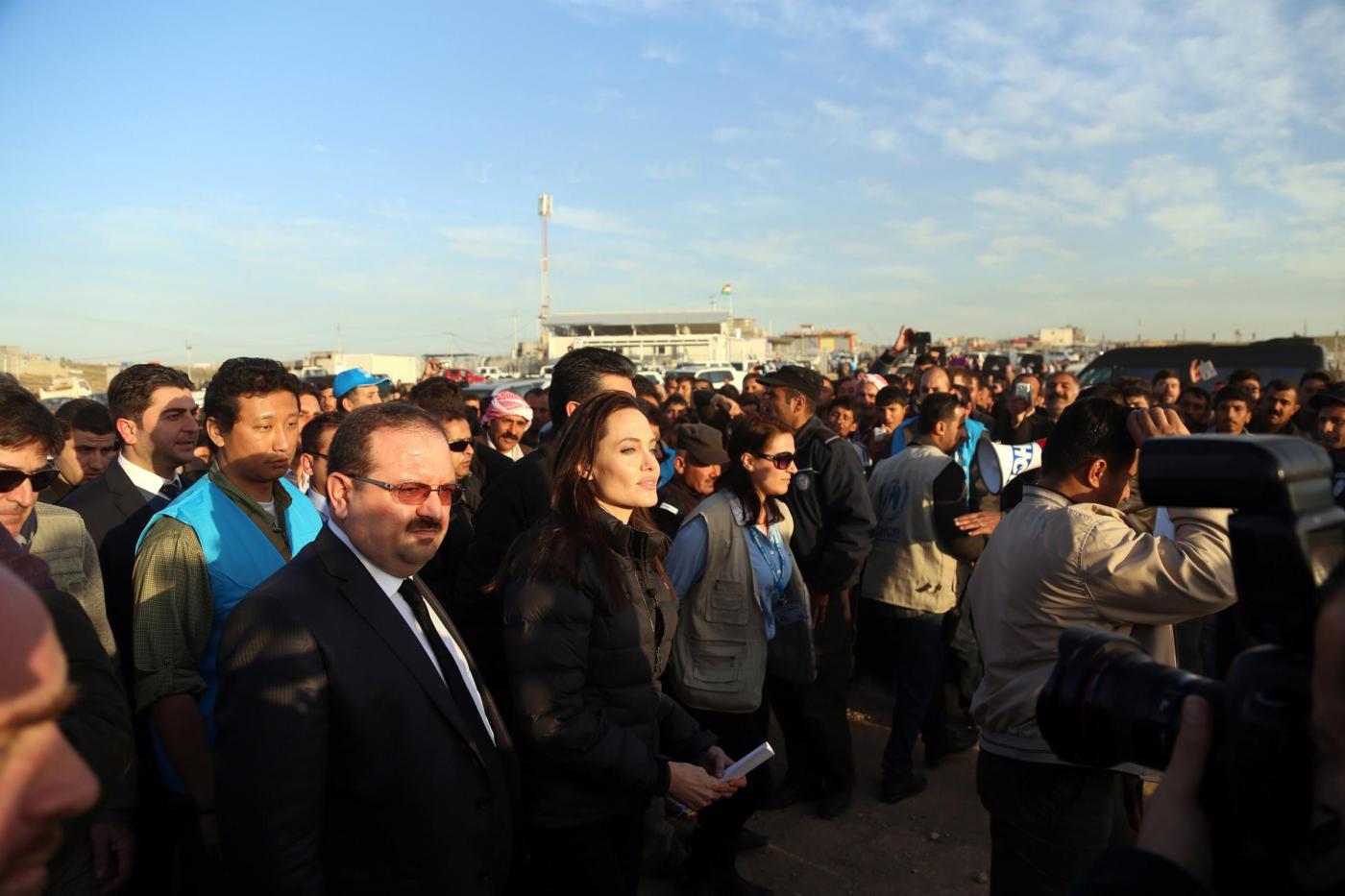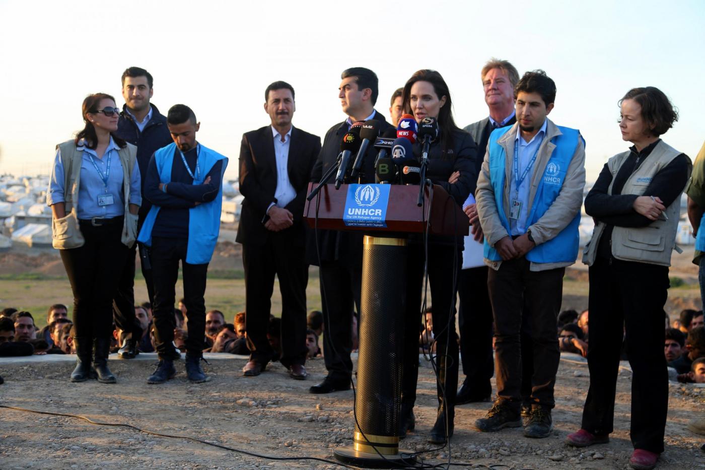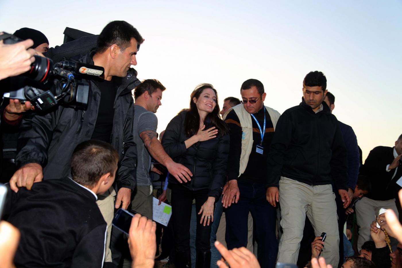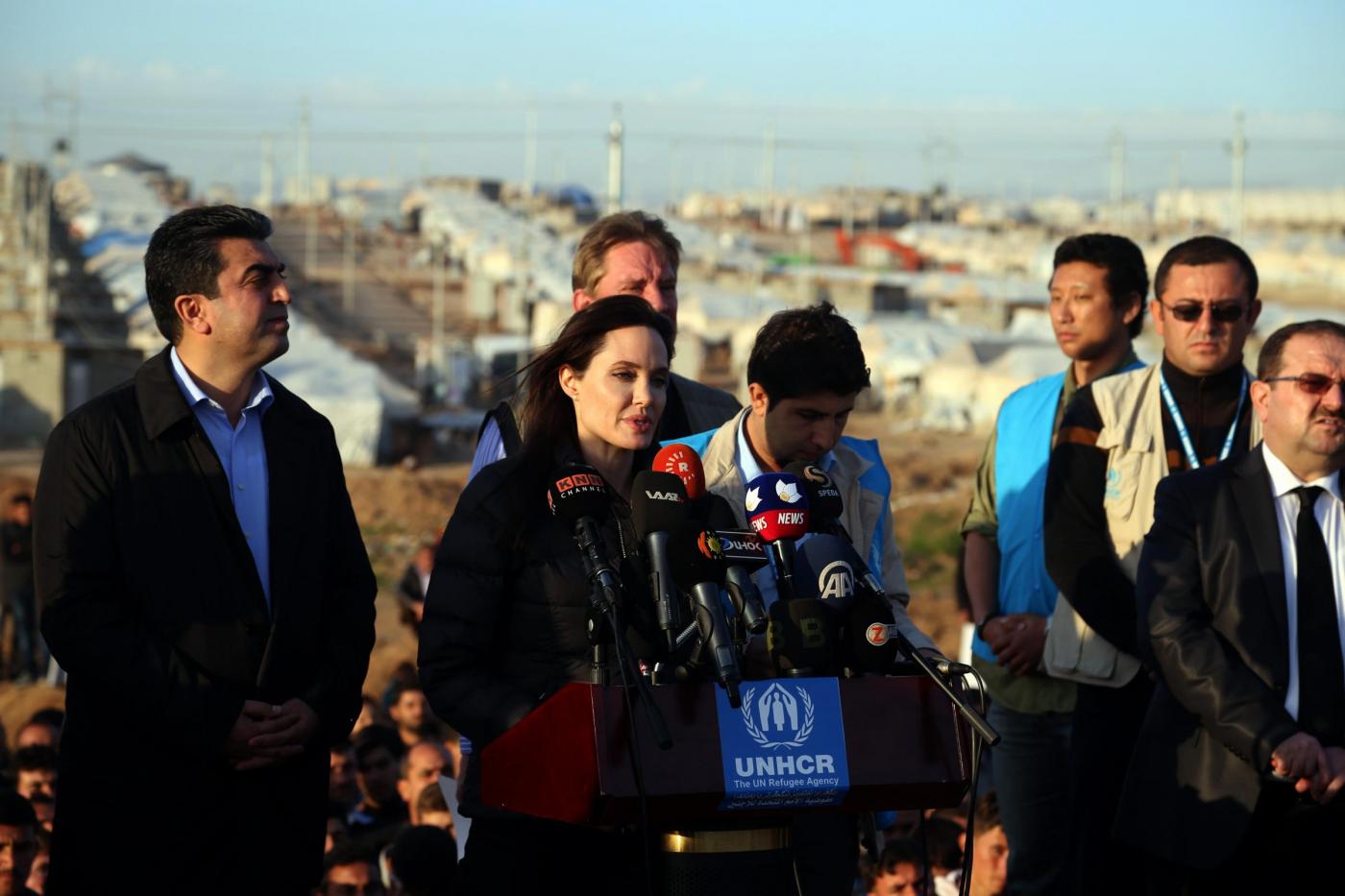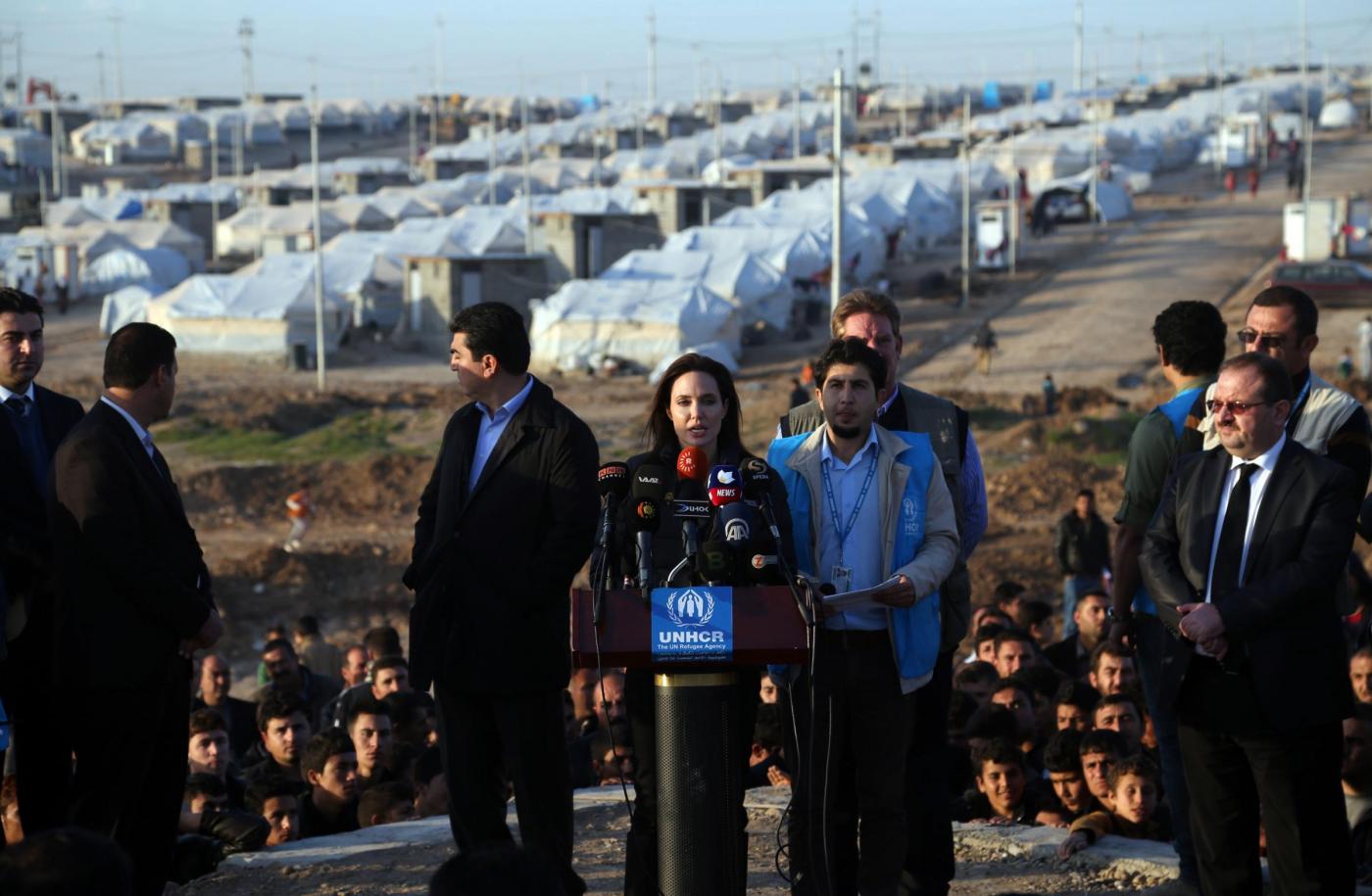 DOHUK (IRAQ) – Angelina Jolie ha fatto visita ad un campo di profughi curdi a Dohuk, nel nord dell’Iraq e dopo la sua visita, in un intervento davanti alla stampa, ha detto che la comunità internazionale dovrebbe “muoversi” e aumentare i finanziamenti per l’UNHCR. “La comunità internazionale deve intensificare i suoi interventi e fare di più” , ha dichiarato l’attrice e regista. La Jolie era in Iraq in qualità di Ambasciatrice delle Nazioni Unite. L’attrice e regista ha lasciato a casa il marito Brad Pitt ed è tornata in Iraq per la seconda volta, dopo il viaggio fatto nel settembre del 2012 nel campo di Domiz. A Dohuk la Jolie ha incontrato donne, uomini e bambini che le hanno raccontato problemi e vicende personali.