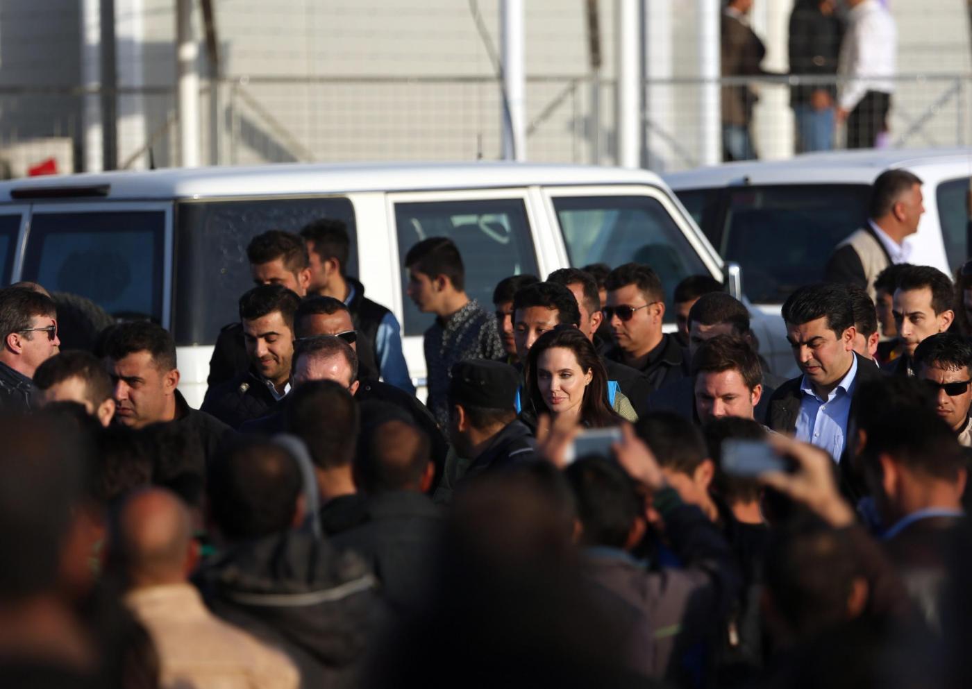 Dohuk 2015-01-25DOHUK, IRAQ - JANUARY 25: United Nations High Commissioner for Refugees (UNHCR) Special Envoy and famous actress Angelina Jolie (C) walks with the crowd during his visit at Hanke Refugee camp, built by UN for the Ezidi Refugees, fled from attacks of the Islamic State of Iraq and the Levant (ISIL), in 10 km west of Dohuk, Iraq on January 25, 2015. (Emrah Yorulmaz - Anadolu Agency)Photo: Emrah Yorulmaz / AA / TT / kod 10611***USA, U.K., CANADA AND FRANCE OUT******BETALBILD***Scanpix/LaPresseOnly Italy