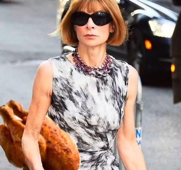 USA – Anna Wintour in tutte le salse grazie a un fotomontaggio. Alla titanica direttrice di Vogue USA, secondo la rivista Forbes anche una delle donne più influenti della Terra, è dedicata una pagina Instagram in cui la Lady di ferro della moda appare nelle situazioni più disparate: accanto a Papa Francesco, su un campo da calcio, versione Barbie, versione pinguino, con un fono o una banana in mano, al lato di un ufo, con un pollo e perfino comodamente seduta sul wc.