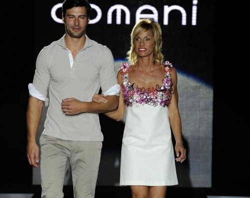 Foto LaPressemoda23 09 2012 Annalisa Minetti sfila per Domani - Milano Fashion WeekWomen's 1,500 meters Paralympic bronze medalist Annalisa Minetti, right, takes the catwalk during the Domani fashion collection, presented in Milan, Italy, Sunday, Sept.23, 2012.