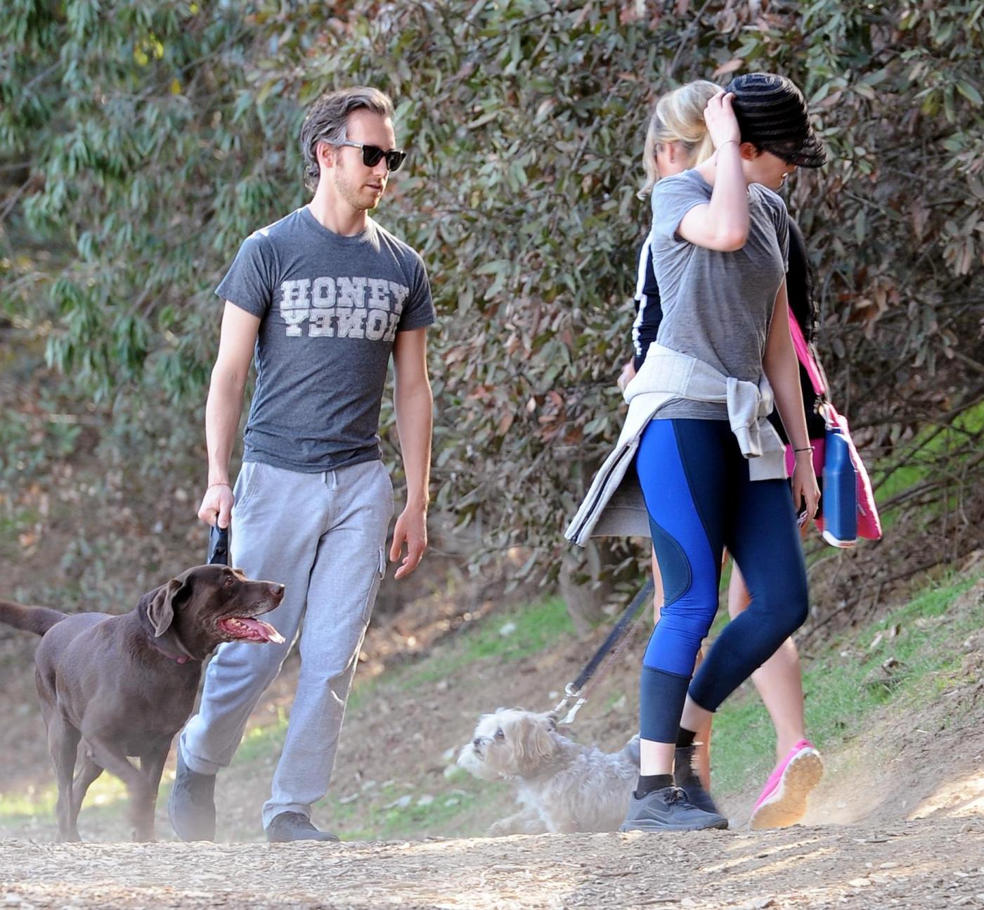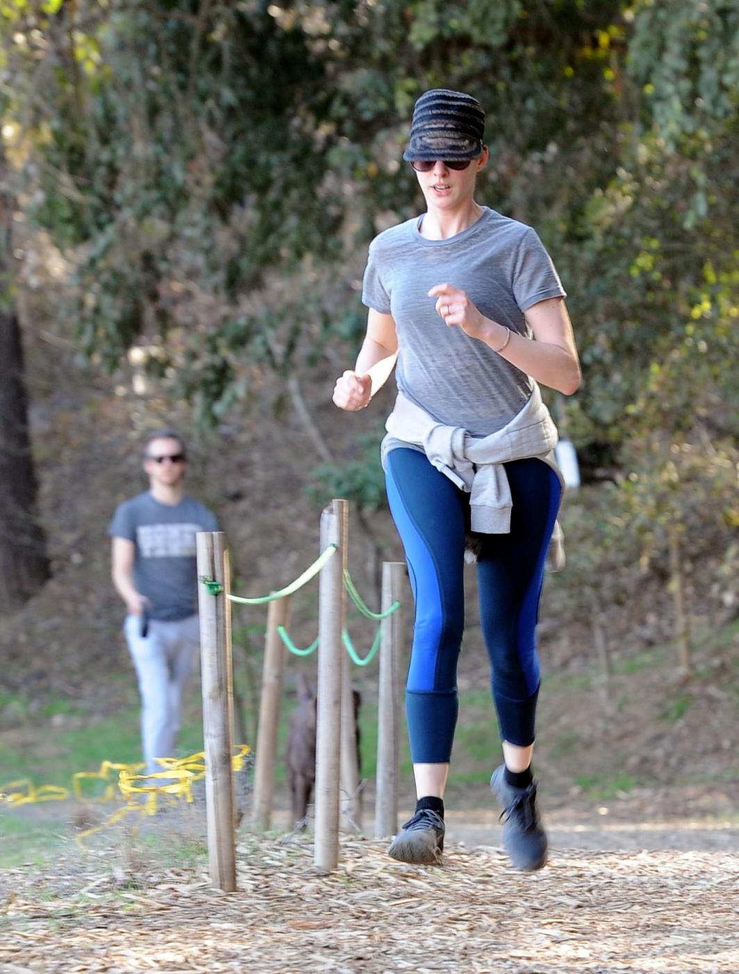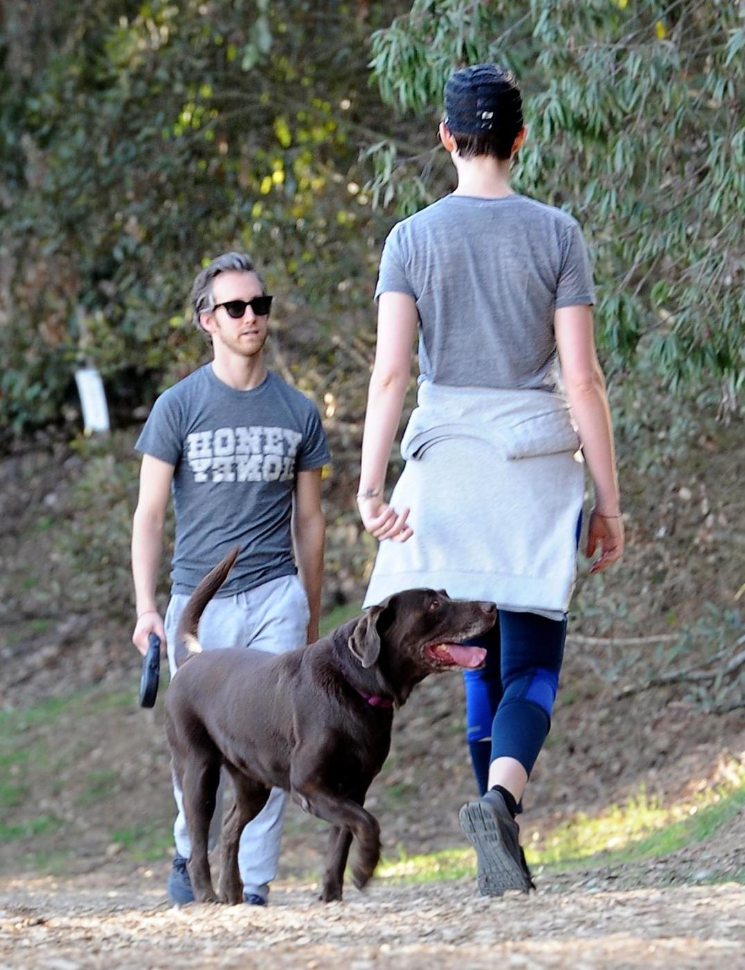 ©NATIONAL PHOTO GROUPAnne Hathaway and husband Adam Shulman go for a hike with their dog, Esmeralda. At one point Anne goes off for a jog. Job: 122713K3 Lapresse Only italyNon-Exclusive December 27th, 2013 Los Angeles, CANPG.com