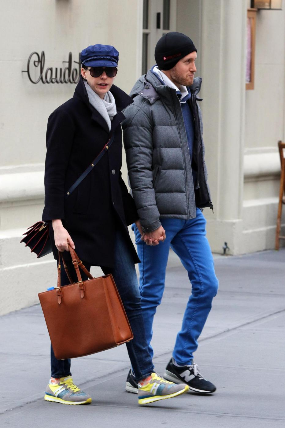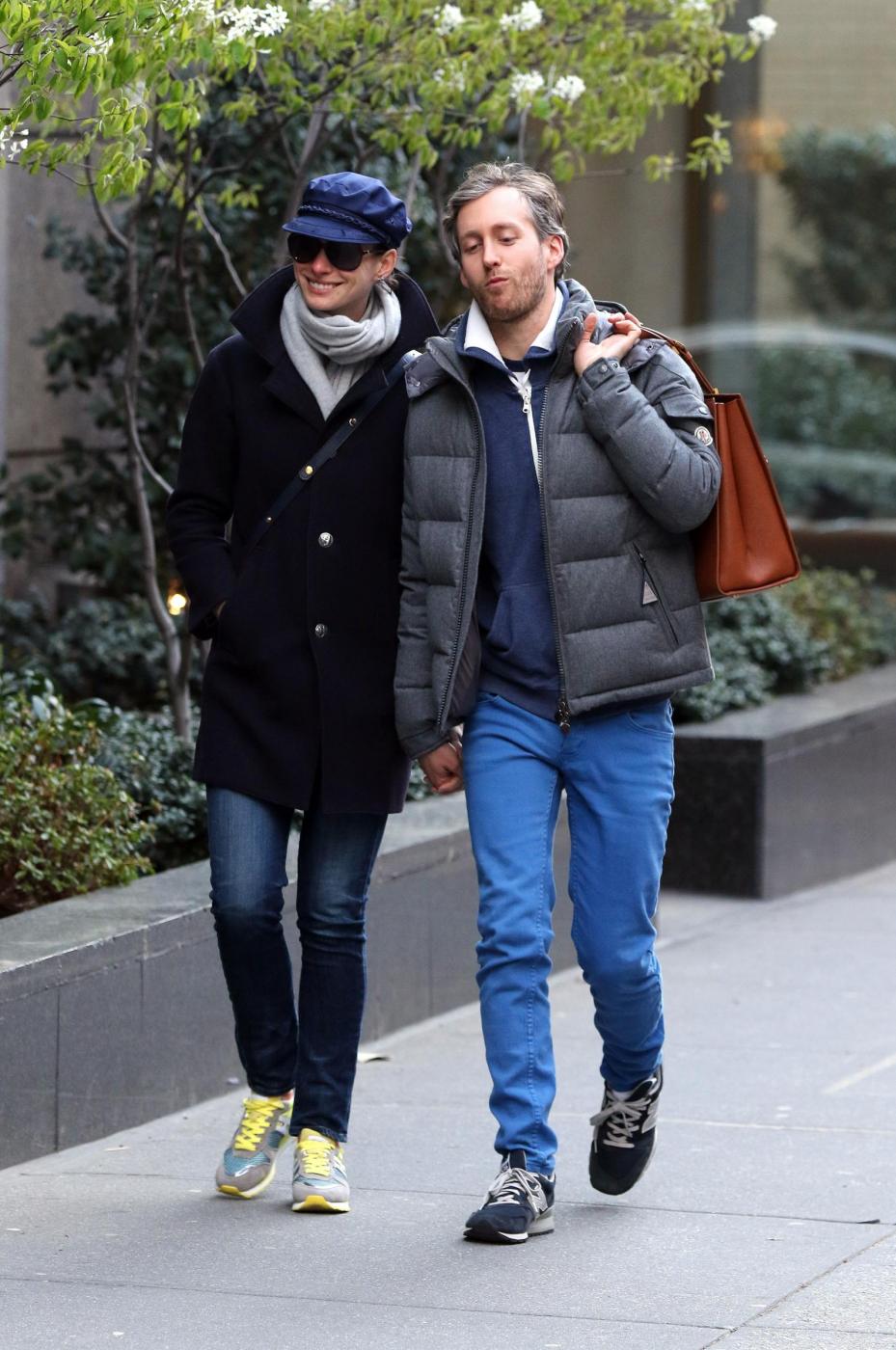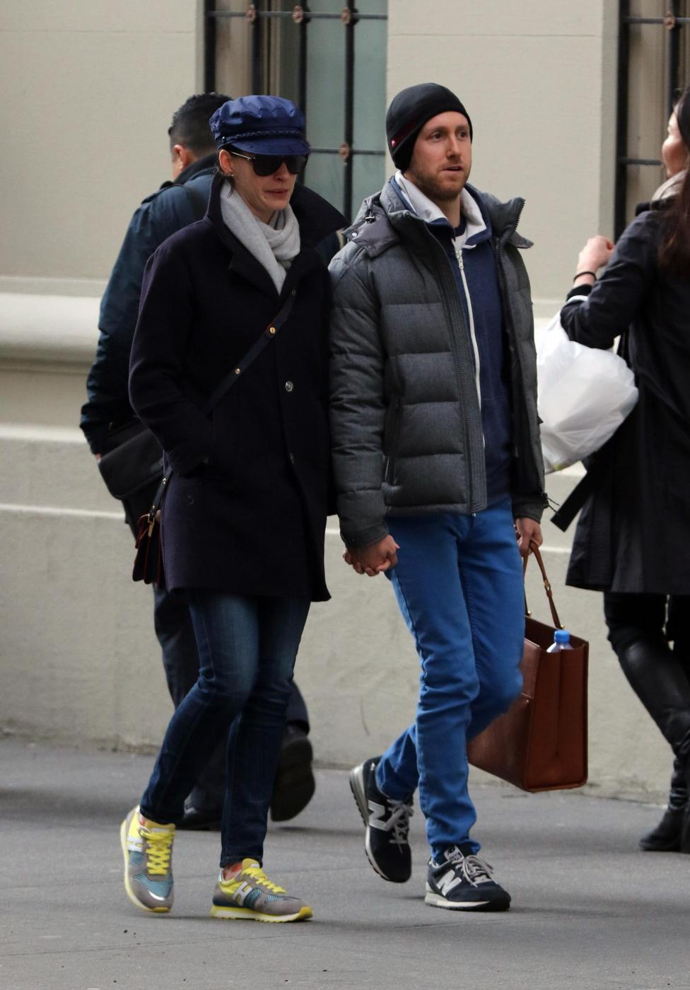 LOS ANGELES – Passeggiano insieme in strada a New York, Anne Hathaway e il marito Adam Shulman. La coppia indossa dei cappotti pesanti (ma a New York la primavera non arriva?) e sembrano sorridenti e spensierati. Ad un certo punto, l’attrice premio Oscar si copre il volto con una sciarpa, non si capisce se per il freddo oppure per non farsi riconoscere.