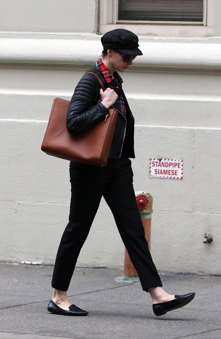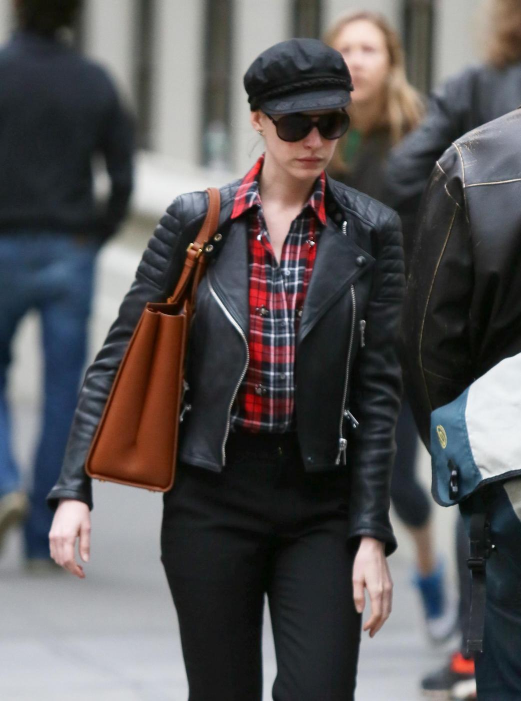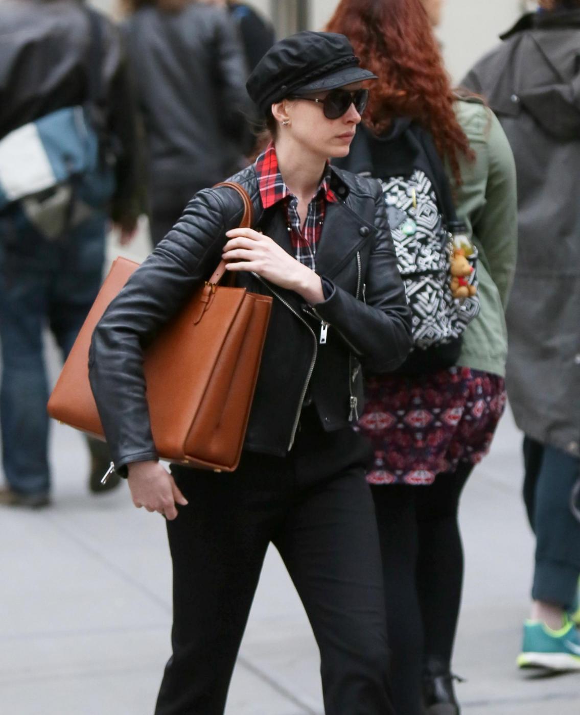 NEW YORK – Non si può sempre essere in tiro come su un red carpet sotto i riflettori di tutto il mondo. Anne Hathaway lo sa bene, e si arma di grandi occhiali da sole e cappello per quando vuole fare una camminata per New York senza farsi notare.