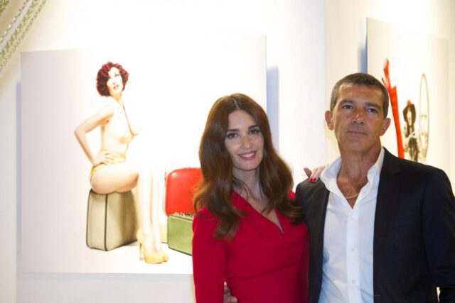 Il marito di Melanie Griffith nel presentare la sua idea di “profumo di donna”, era accompagnato dall’attrice Paz Vega (foto Ap/LaPresse)