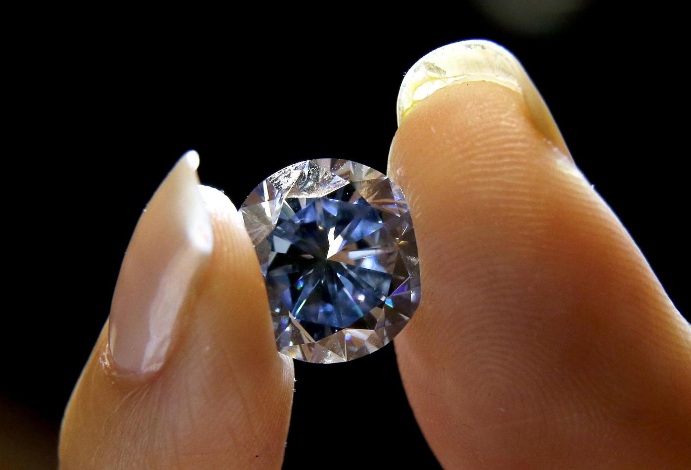 A rare 7.59 carat blue diamond is displayed at a media opportunity at Sotheby's auction rooms in London, Monday, Sept. 9, 2013. The vivid blue diamond is estimated to achieve 12 million pounds ($18.8 million/14.3 million euro) when it is auctioned in the Magnificent Jewels and Jadeite sale on Oct. 7 in Hong Kong. (AP Photo/Kirsty Wigglesworth)