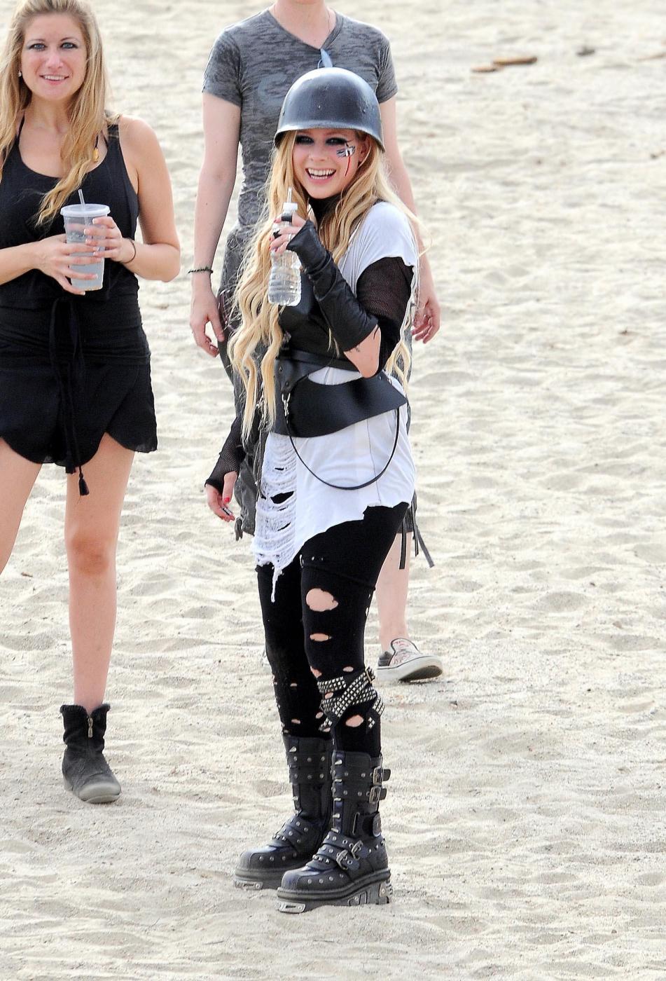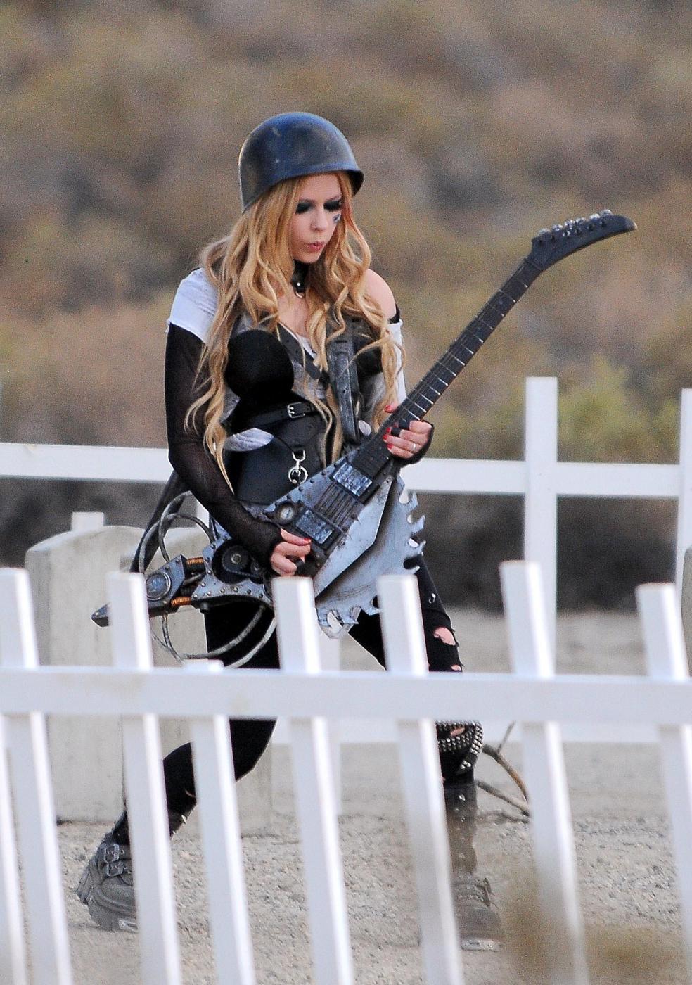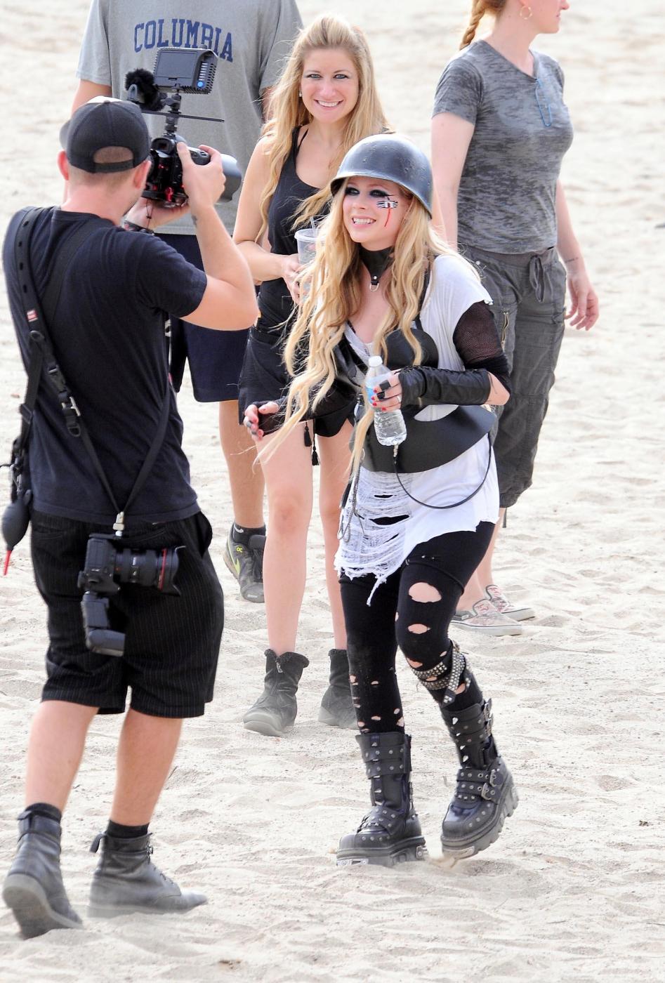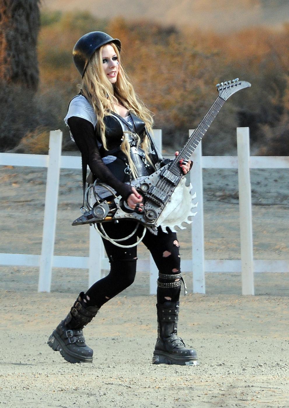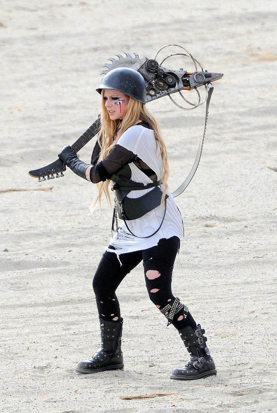 La cantante canadese, nel video appare molto aggressiva e “indossa” una serie di munizioni e una chitarra elettrica futuristica e il volto “mimetizzato”. Il video è in via di realizzazione a Palmdale in California (foto LaPresse)