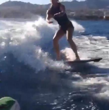 TEL AVIV (ISRAELE) – Bar Refaeli si cimenta sulla tavola da surf. La top model è terribilmente sexy e si diverte con la tavola.
