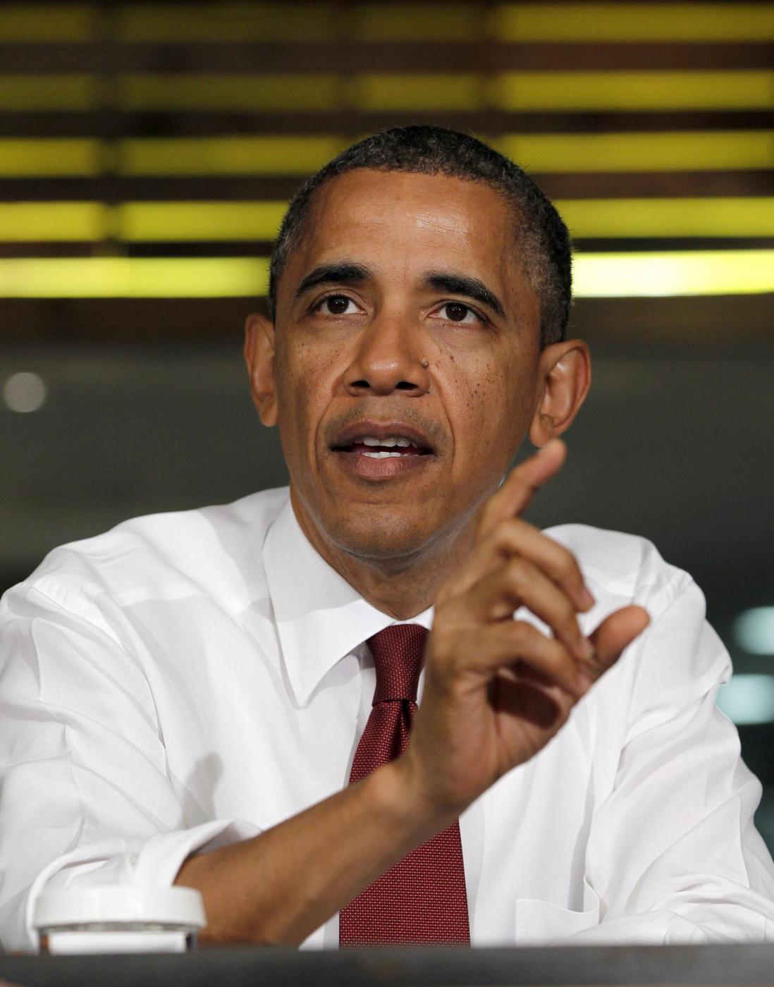 President Barack Obama participates in roundtable discussion with local small business owners at Taylor Gourmet in the U Street neighborhood in Washington, Wednesday, May 16, 2012. (AP Photo/Pablo Martinez Monsivais)
