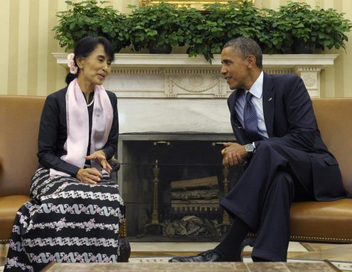 Il premio Nobel per la Pace e Obama sono apparsi rilassati e sorridenti prima dell’incontro privato allo Studio Ovale. Il presidente “ha riaffermato la determinazione degli Stati Uniti nel supportare i suoi sforzi per la promozione di riforme politiche ed economiche e per garantire la piena protezione dei diritti fondamentali del popolo birmano”.