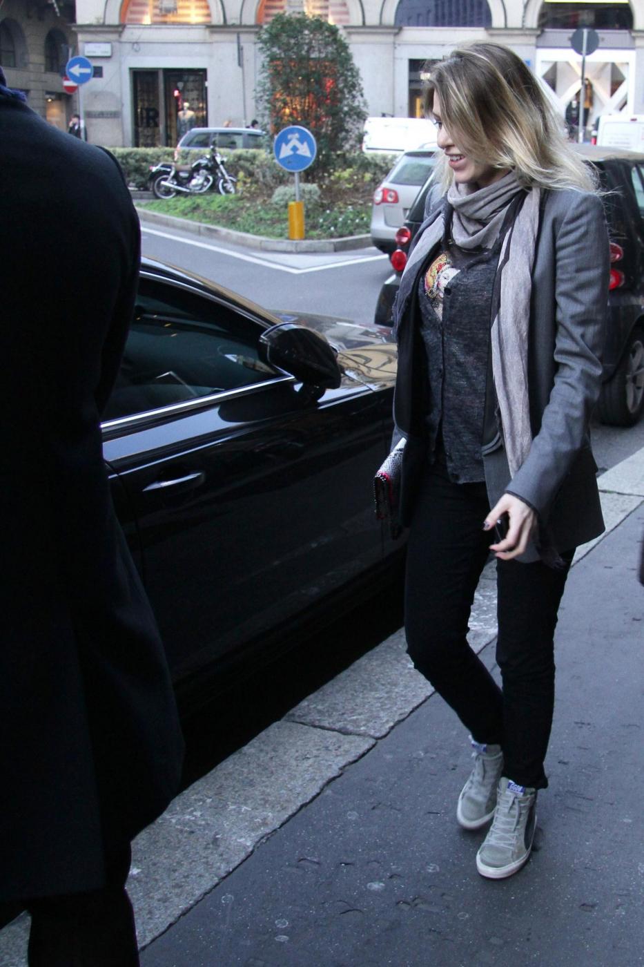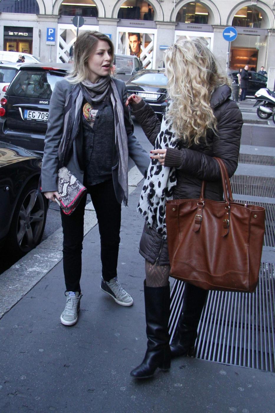 In queste foto, B.B. viene fotografata all’uscita della Orologeria Pisa a Milano insieme ad un’amica (foto LaPresse):