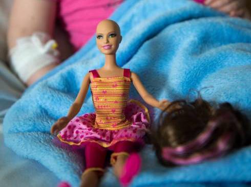 epa03792940 A child plays with one of twelve bald Barbie dolls at Jurasz University Hospital in Bydgoszcz, Poland, 19 July 2013. The Jurasz Hospital is the only one in Poland where children after chemotherapy can play with specially designed Barbie dolls. The Mattel company created the bald dolls for young patients who have lost their hair due to cancer treatments or other medical reasons. The dolls are not for sale at retail stores. EPA/TYTUS ZMIJEWSKI POLAND OUT