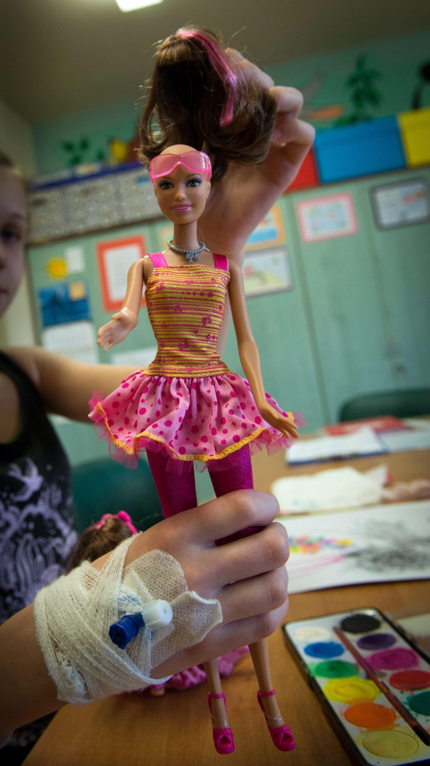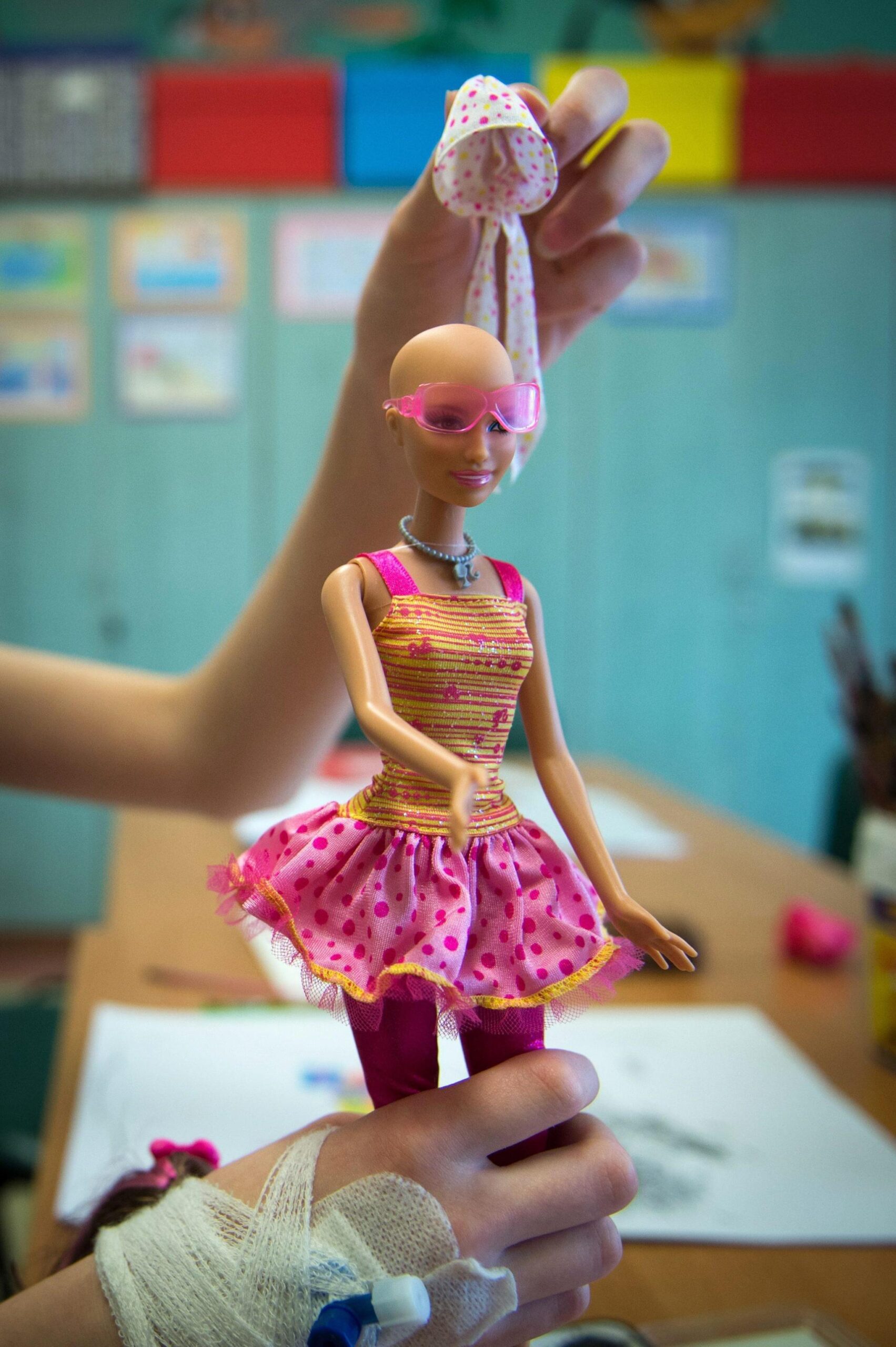 epa03792938 Eigh year old Nikola Cichowczyk plays with one of twelve bald Barbie dolls at Jurasz University Hospital in Bydgoszcz, Poland, 19 July 2013. The Jurasz Hospital is the only one in Poland where children after chemotherapy can play with specially designed Barbie dolls. The Mattel company created the bald dolls for young patients who have lost their hair due to cancer treatments or other medical reasons. The dolls are not for sale at retail stores. EPA/TYTUS ZMIJEWSKI POLAND OUT