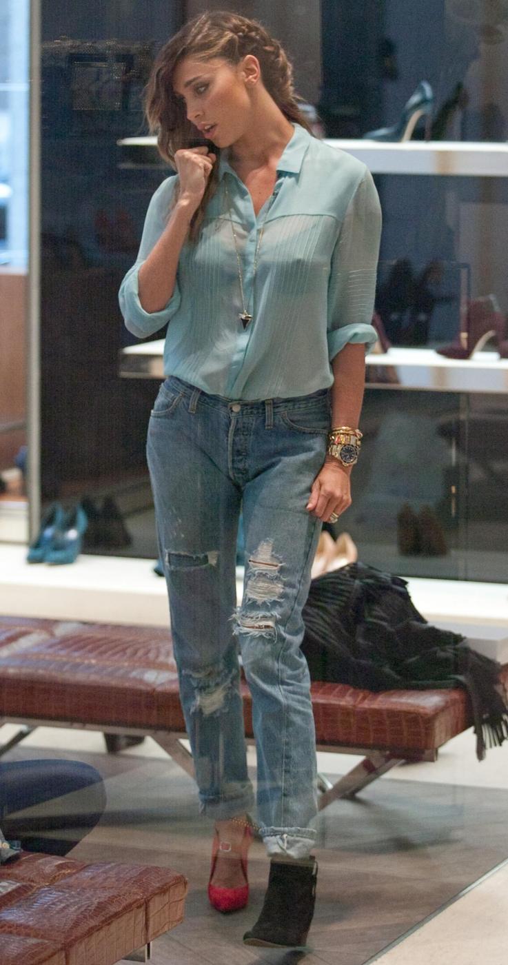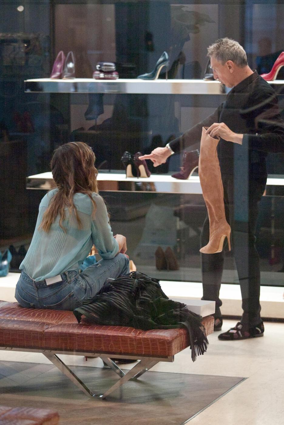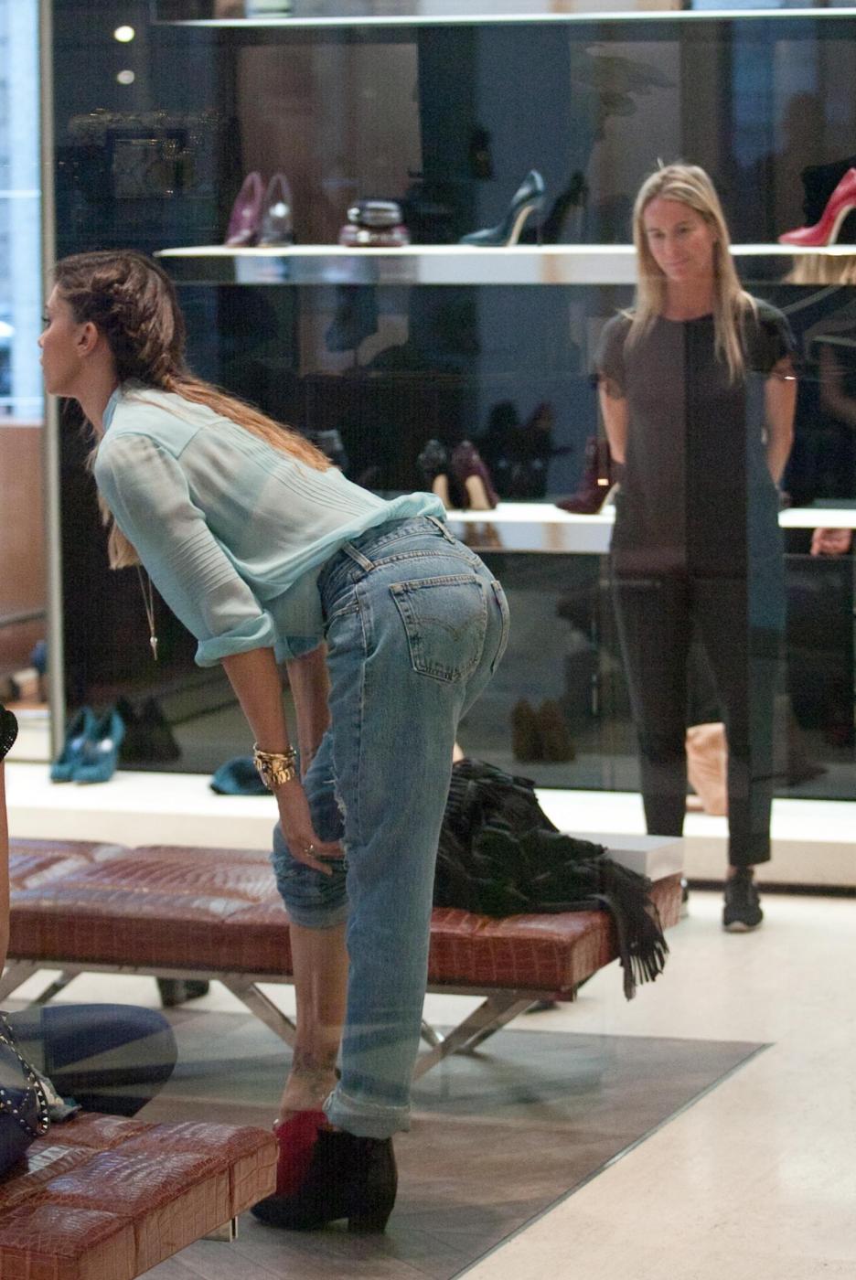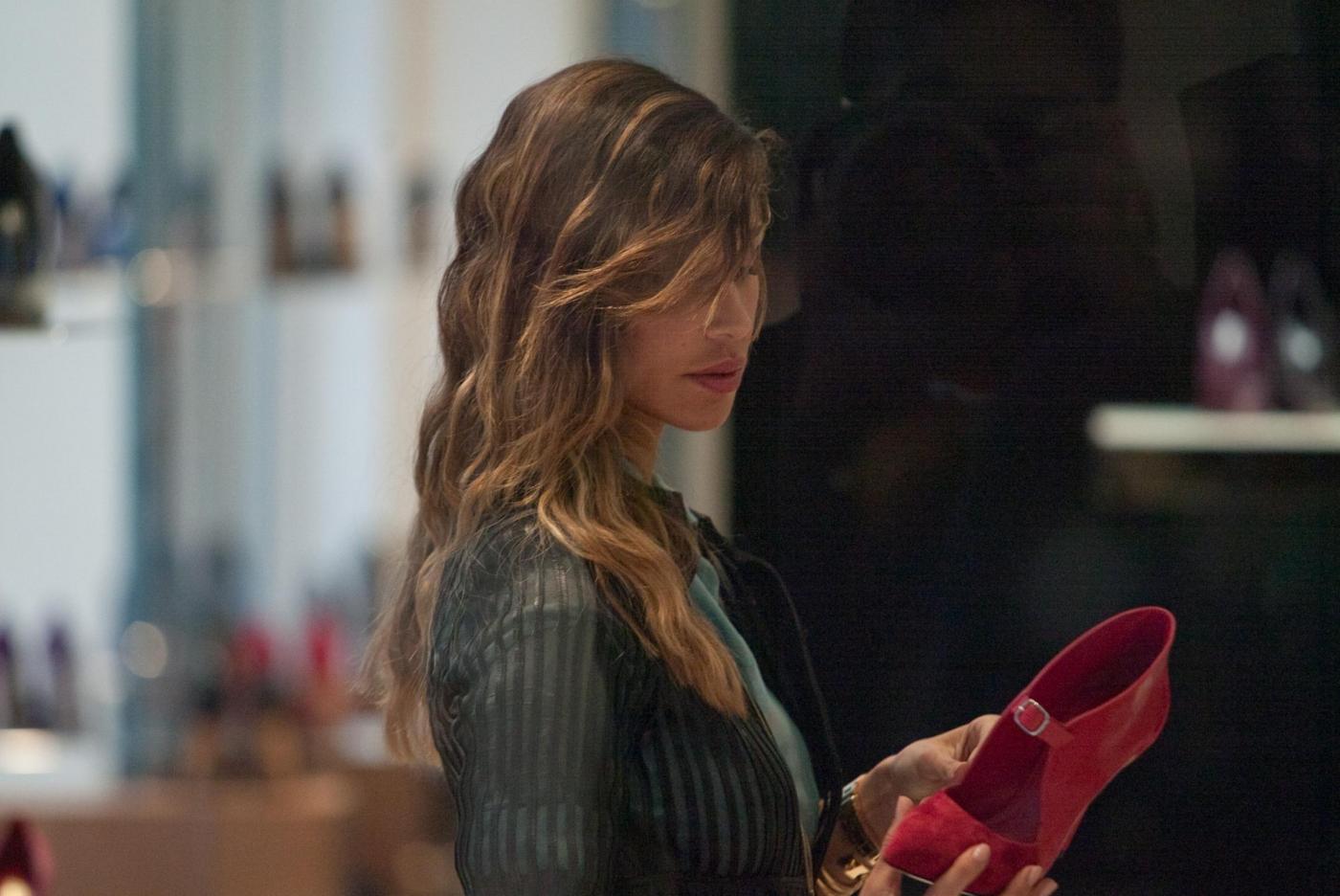 Belen è indecisa tra quale stivaletto acquistare: la modella e presentatrice, indossa jeans strappati e camicia che non nasconde il reggiseno nero. I suoi capelli sono intrecciati da una parte. Ad un certo punto si china a provare le scarpe e concede ai suoi fan delle pose decisamente sexy.