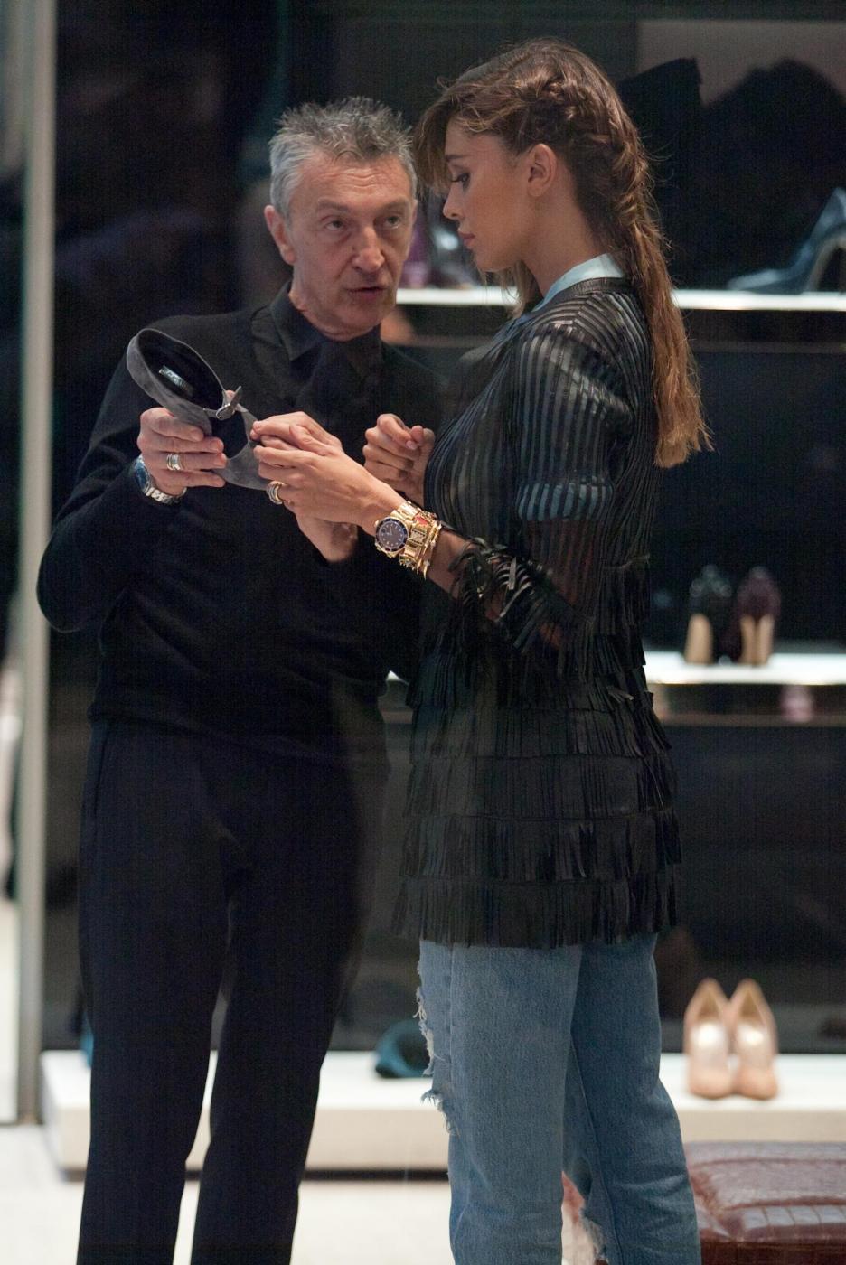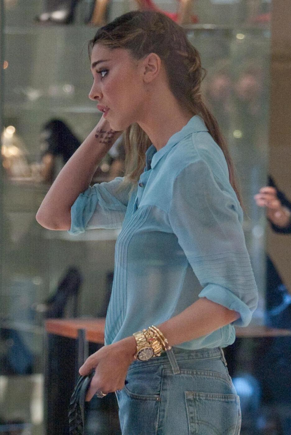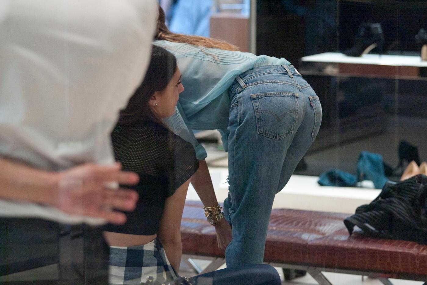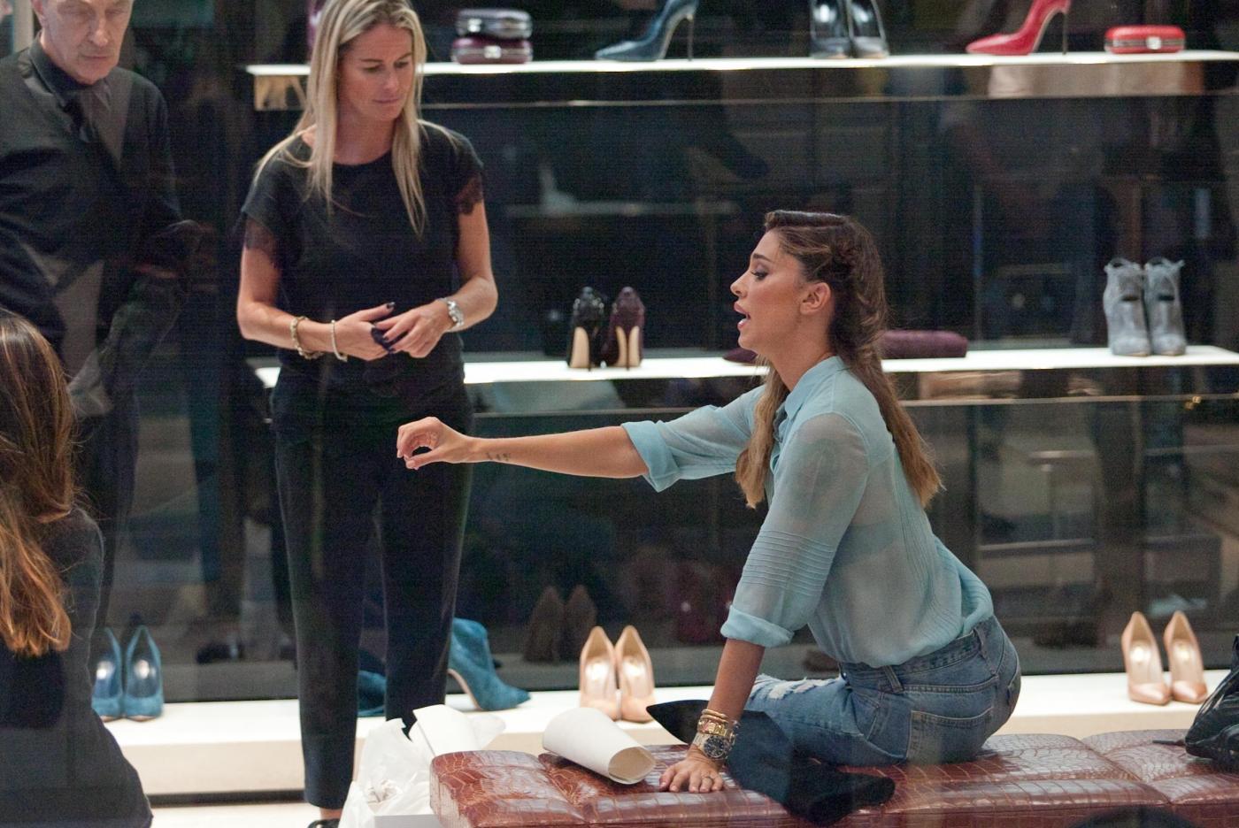 Belen è indecisa tra quale stivaletto acquistare: la modella e presentatrice, indossa jeans strappati e camicia che non nasconde il reggiseno nero. I suoi capelli sono intrecciati da una parte. Ad un certo punto si china a provare le scarpe e concede ai suoi fan delle pose decisamente sexy.