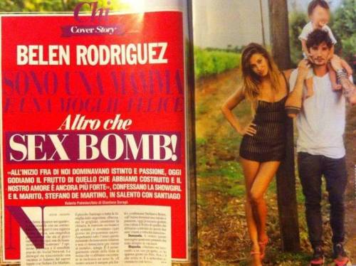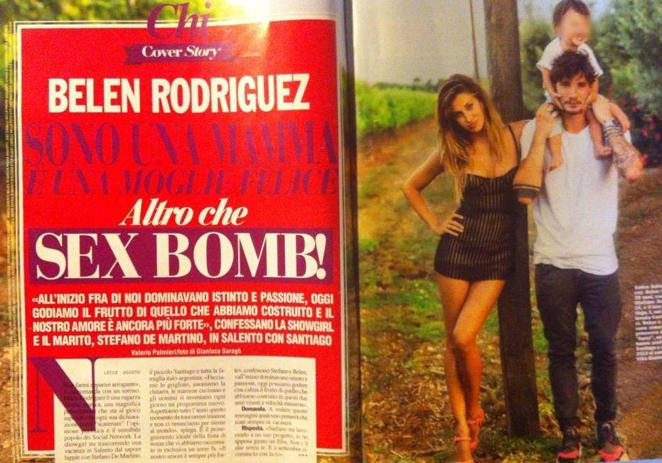 ROMA – Belen Rodriguez, mamma e moglie felice, altro che sex bomb. Il settimanale Chi di questa settimana dedica un articolo a Belen Rodriguez e ai suoi giorni di vacanza in Salento insieme a Stefano De Martino. “Sono una mamma e una moglie felice, altro che sex bomb!” campeggia nella prima pagina dedicata all’articolo. Nell’intervista, Belen racconta infatti la sua vita da mamma e di come sta trascorrendo in famiglia le sue vacanze: